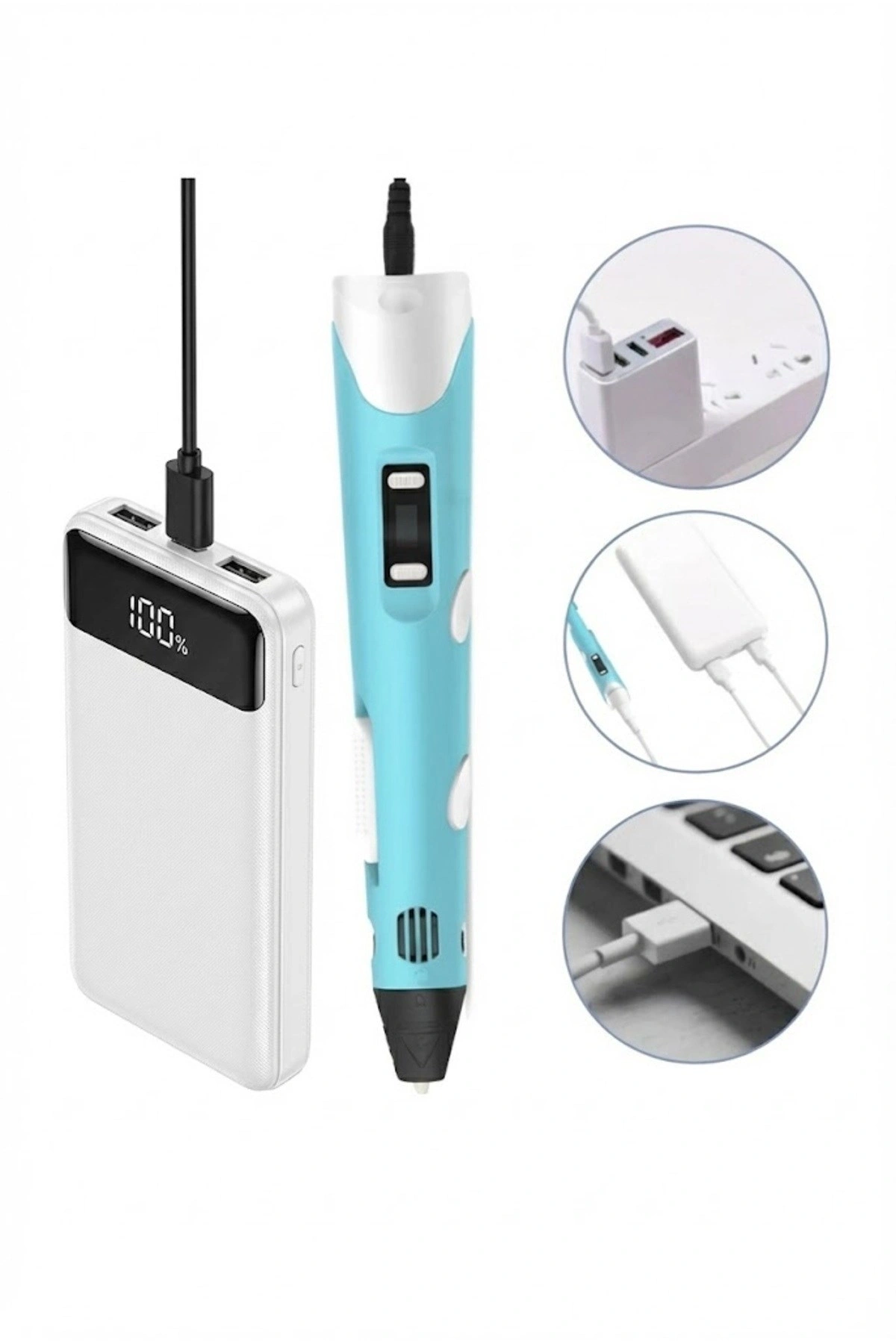 3D Kalem Seti (MAVİ) Dijital Göstergeli + 3 Renk Filament Hediyeli Eğitici Yazıcı ABS/PLA Uyumlu