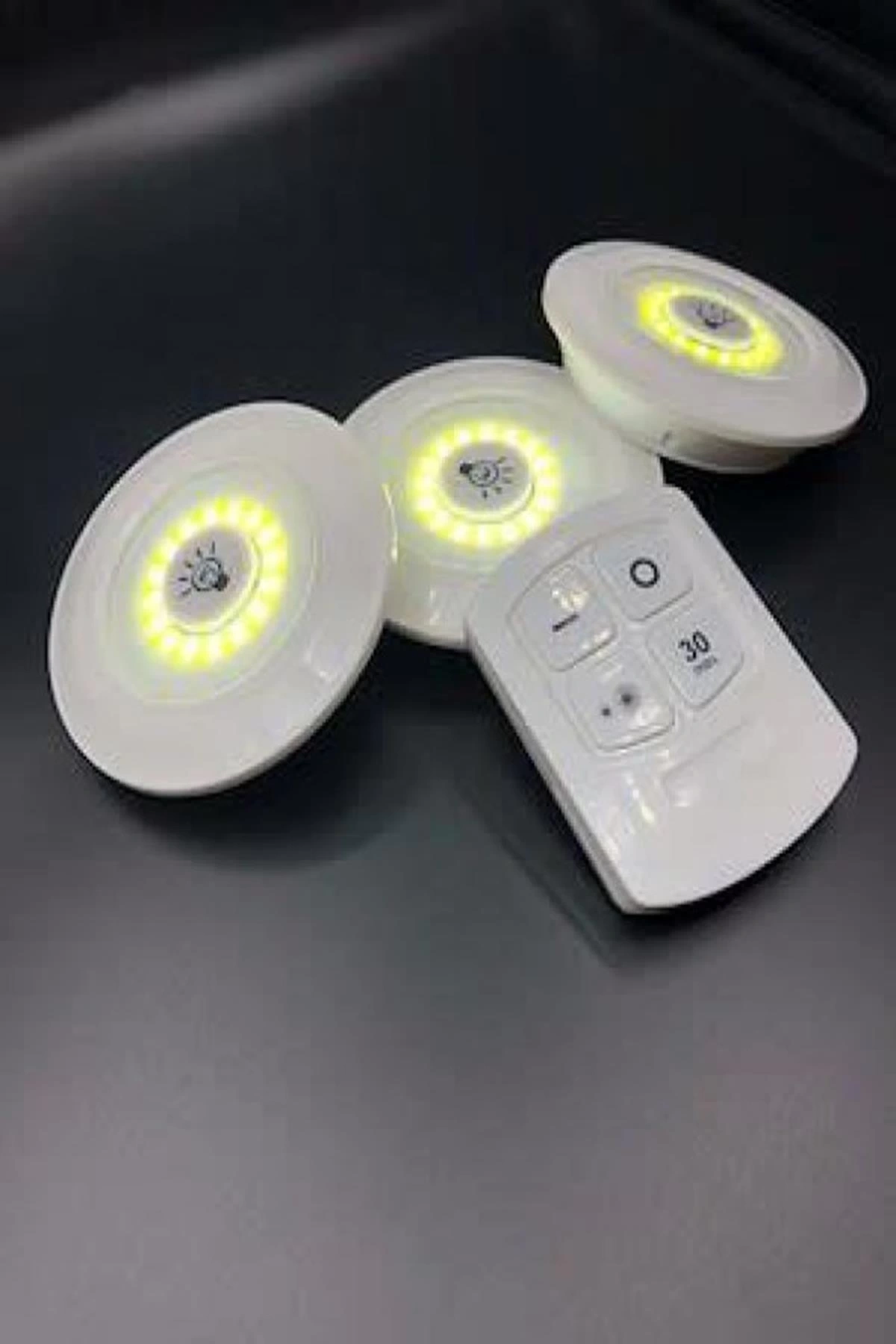 3lü Uzaktan Kumandalı Yapışkanlı Kablosuz Led Spot Lambalar (5365)