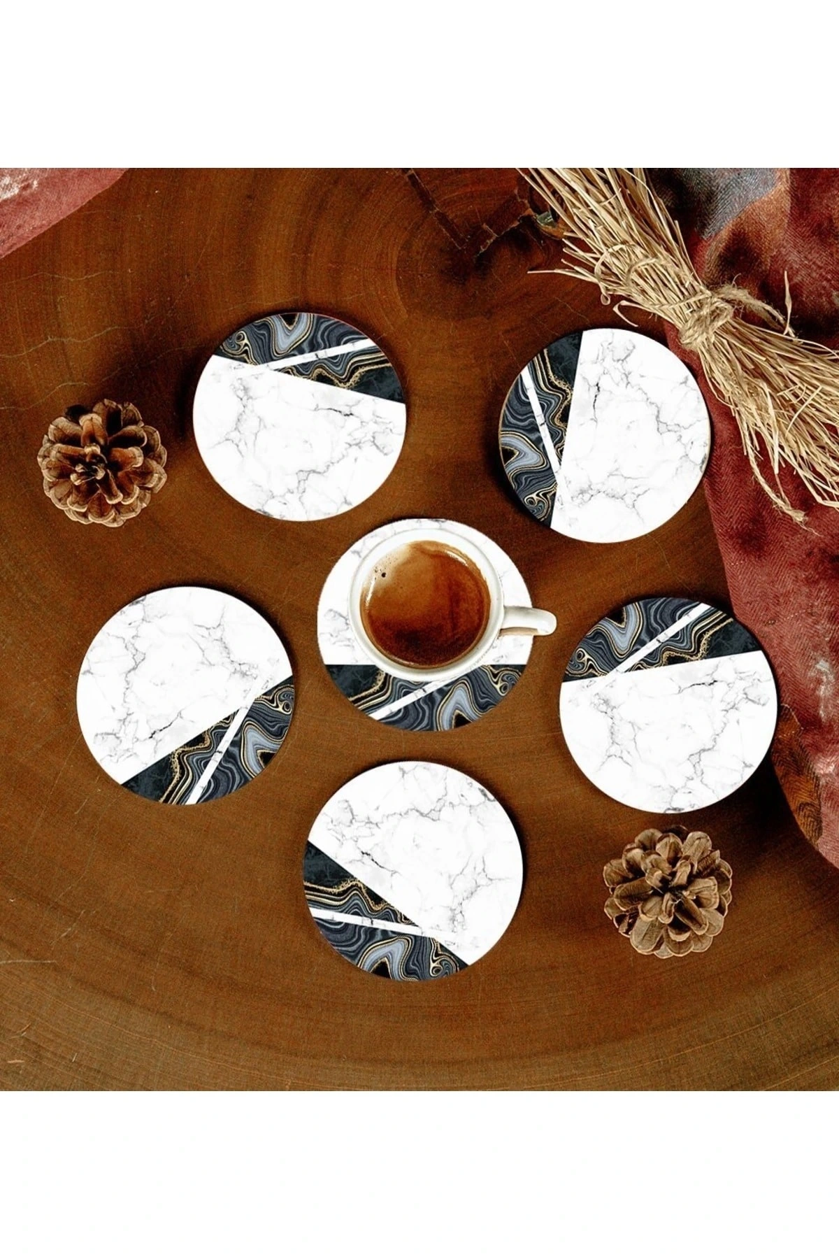 6 Adet Desenli Mdf Bardak Altlığı