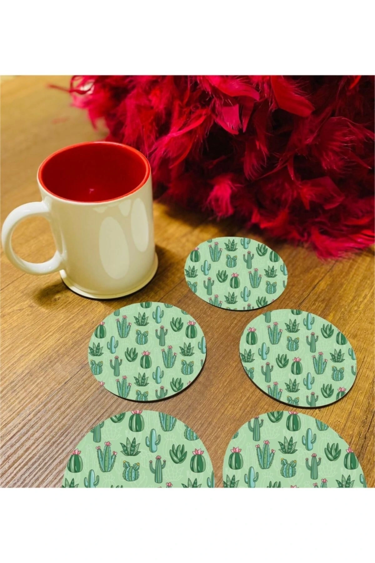 6 Parça Mini Kaktüs Ahşap Bardak Altlığı