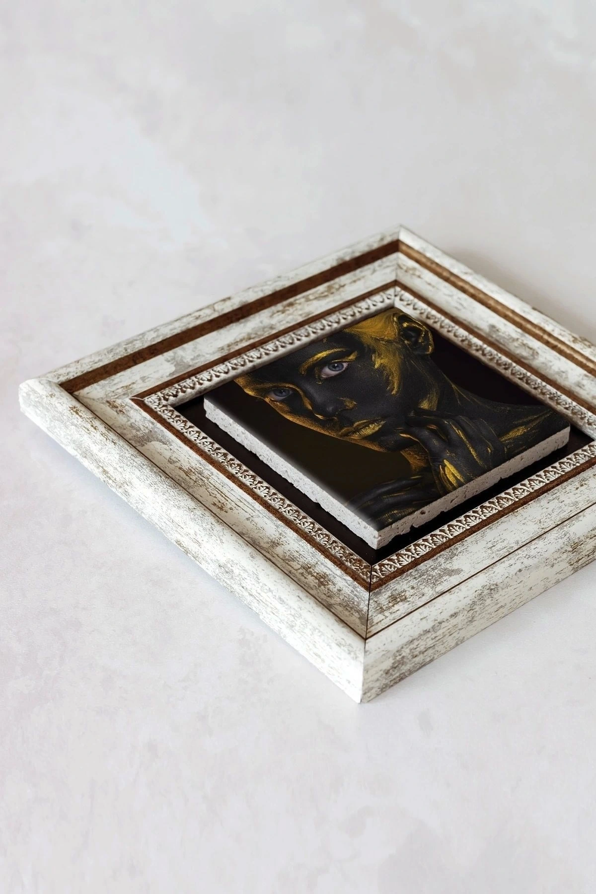 Afrikalı Kadın Çerçeveli Taş Tablo , Çerçeveli Taş Duvar Dekoru-enkcrcvtbl-00162 20 cm