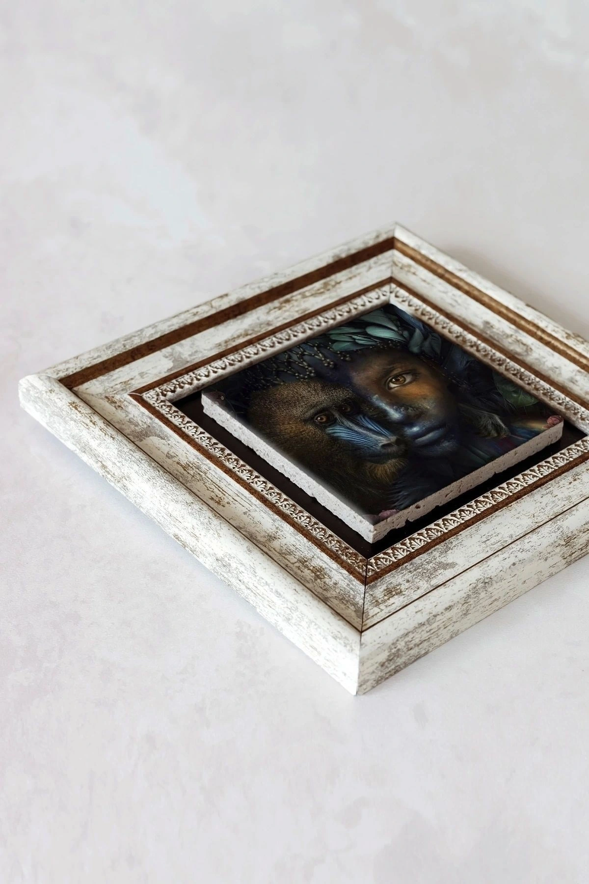 Ürün hakkında: Ölçüleri: 20 cm x 20 cm'dir. ; Kalınlık :2,5 cm'dir. ; Ürünün arka tarafında askı aparatı bulunmaktadır. ; Kullanılan çerçeveler yüksek kaliteli, eskitme görünümlü kompozit malzemeden üretilmiştir. ; Taşların yüzeyindeki baskı teknolojisi özel olup sağlığa hiçbir zararı yoktur. ; Kullanılan malzeme dağdan çıkan gerçek taş oldugu için yüzeyinde belli oranda gözenek bulunması ve renginin krem renginin tonlarını barındırması normaldir kimyasal malzeme teması Yüzey deformasyona maruz kalabilir. ; Nemli bezle silinerek temizlenebilir. ; Isıya, suya ve neme dayanıklıdır. ; Kutu içeriği: Orijinal kutu içerisinde 1 adet çerçeveli taş duvar dekoru. ; 1 adet çerçeveli duvar dekoru ağırlığı: 250 gr çerçeve askısı ile duvara montajı yapılabilir.;