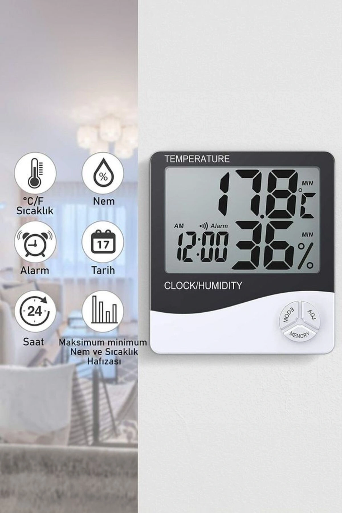 Akıllı Dijital Nem Sıcaklık Ölçer Termometre Masa Saati Fonksiyonel Ev Oda Ortam Dijital Sensörlü