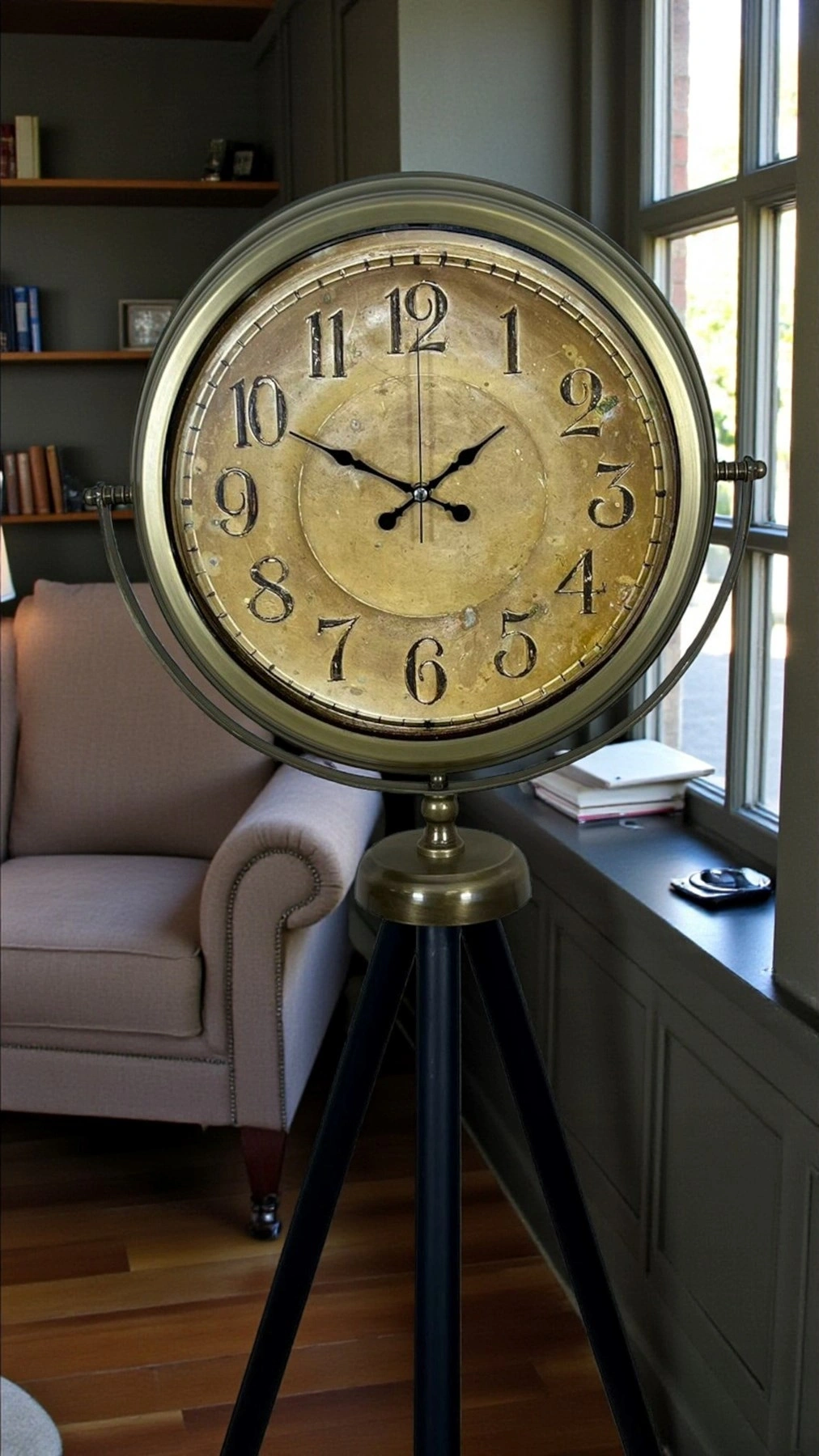 Tripod Ayaklı Yer Saati: Dengeli yapı, dekoratif ve modern bir sunum.