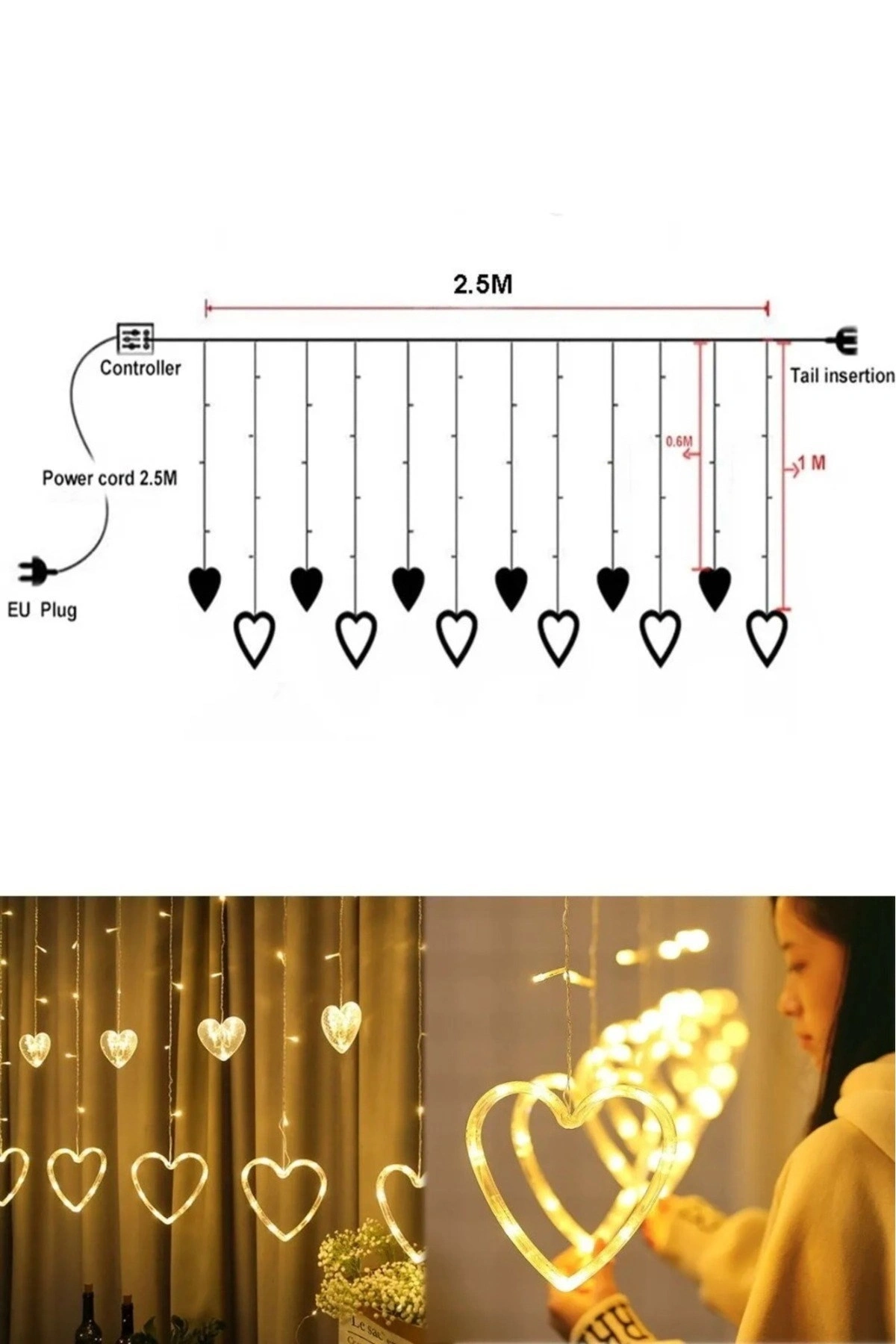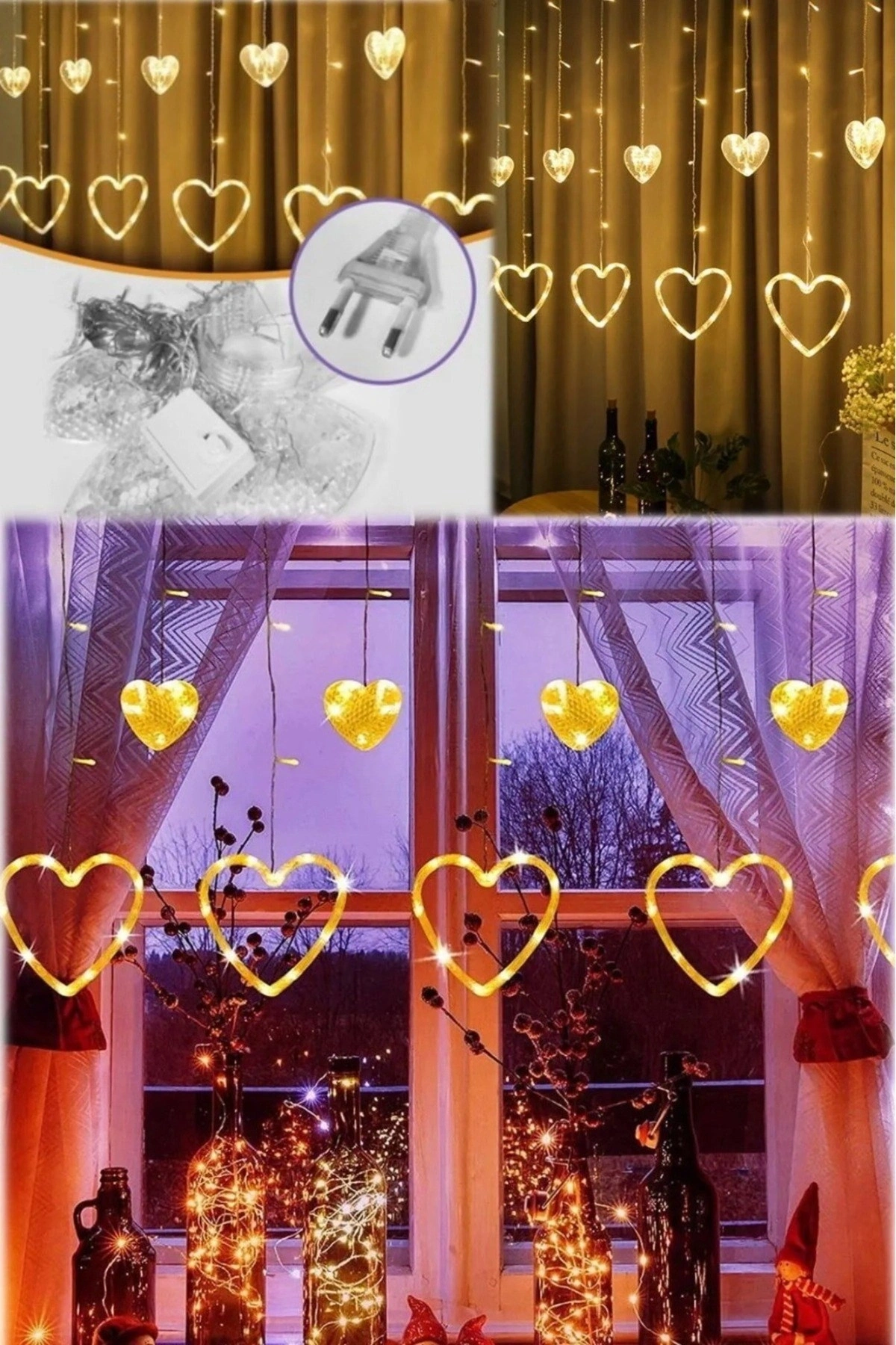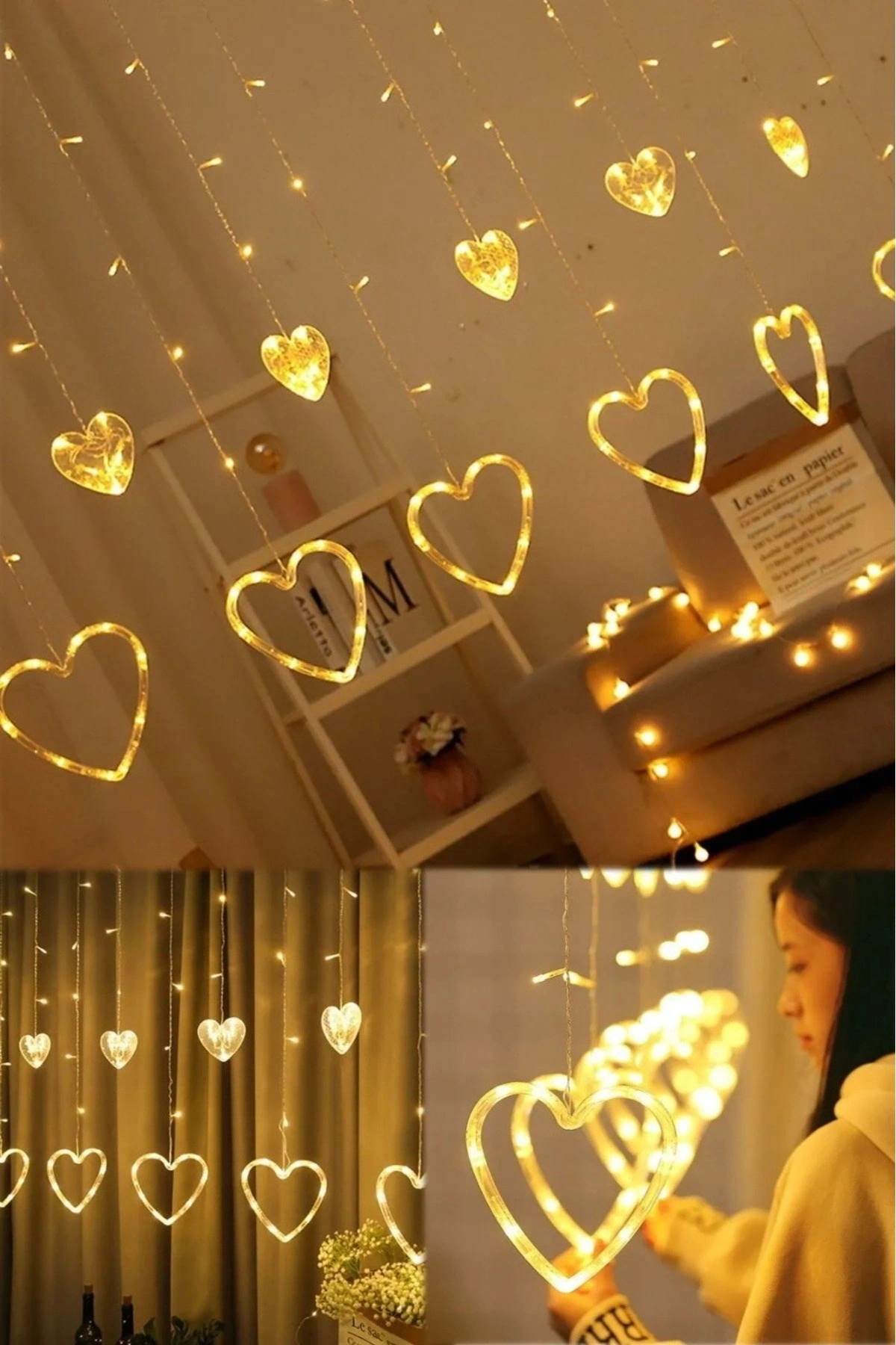 Asılabilir Sarkım Ledli Kalpli Modlu Dekoratif Ev Oda Bahçe Aydınlatma Sarkıtma Ledi