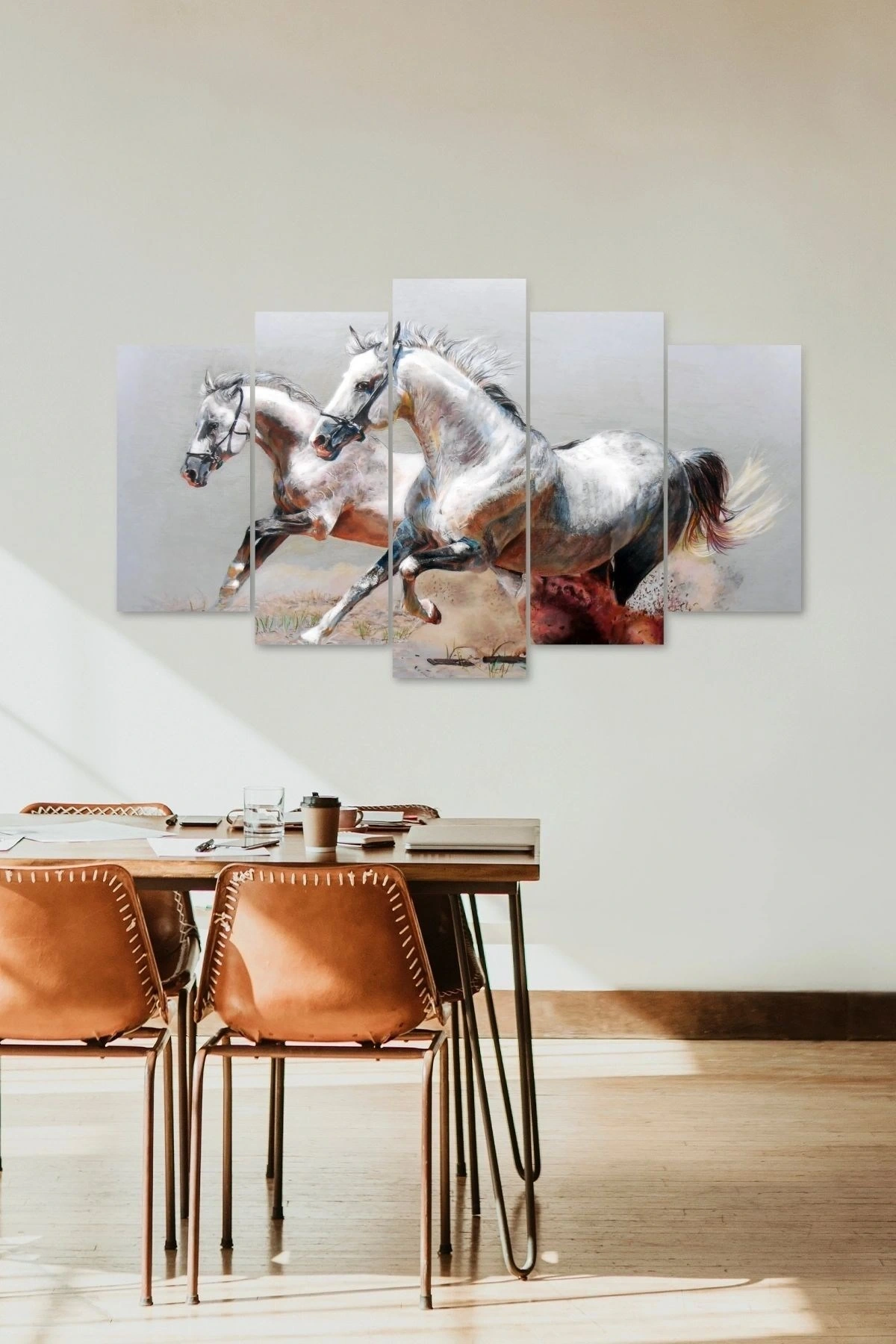 Modern tasarımıyla ev ve ofis dekorasyonunuza şıklık katan Atlar Manzara 5 parçalı MDF tablo, estetik görünümüyle dikkat çeker; Yüksek kaliteli MDF malzemesi sayesinde uzun ömürlü kullanım sunar ve dayanıklılığıyla ön plana çıkar; Her bir parçada detaylı işçilikle işlenmiş ahşap yüzey, mekanınıza sıcak ve doğal bir dokunuş ekler;