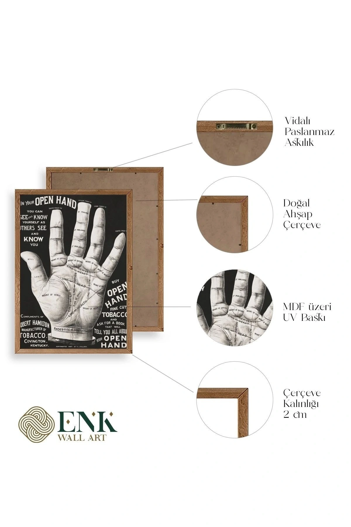 Avuç Okuma Rehberi Ahşap Çerçeveli Tablo 23 x 30