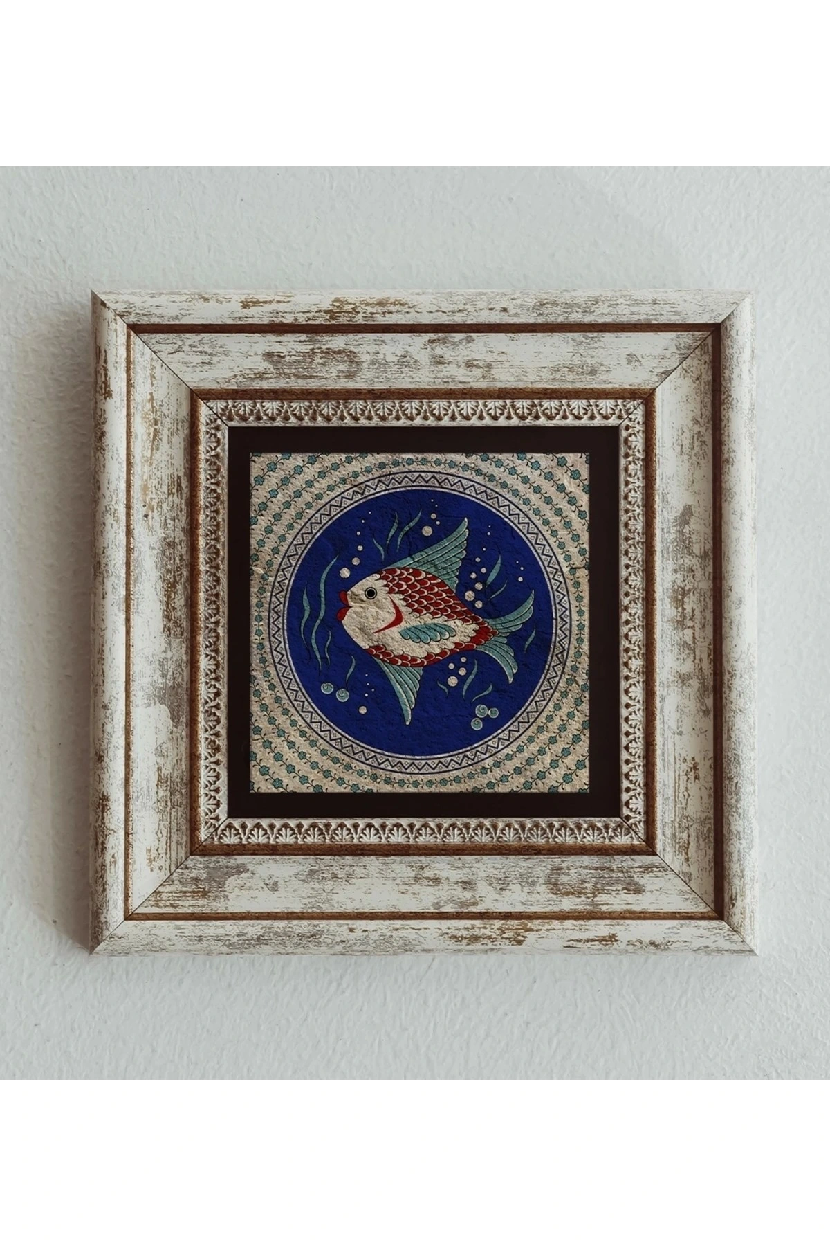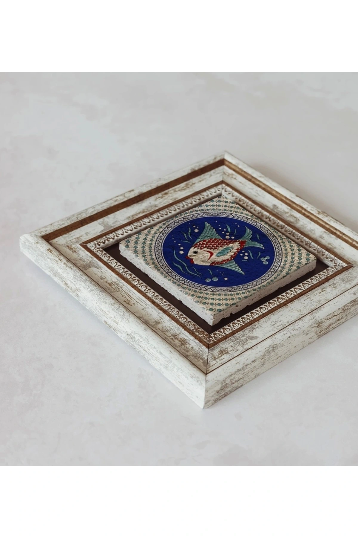 Balık Desenli Çerçeveli Taş Tablo , Çerçeveli Taş Duvar Dekoru 20 cm