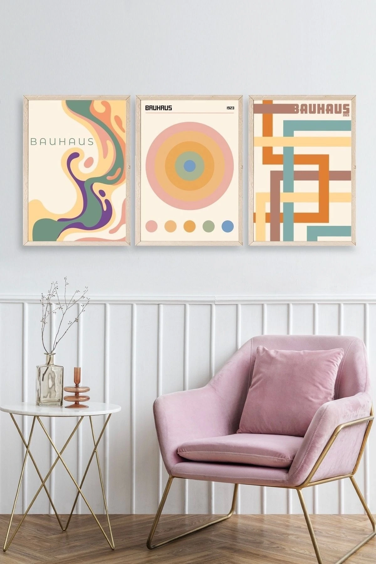 Bauhaus Üçlü Ahşap Çerçeveli Tablo 50 x 70