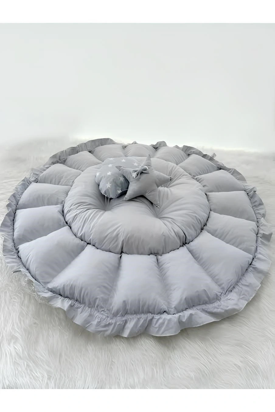 GRİ-AYICIK DESENLİ BEBEK YATAĞI , OYUN MİNDERİ