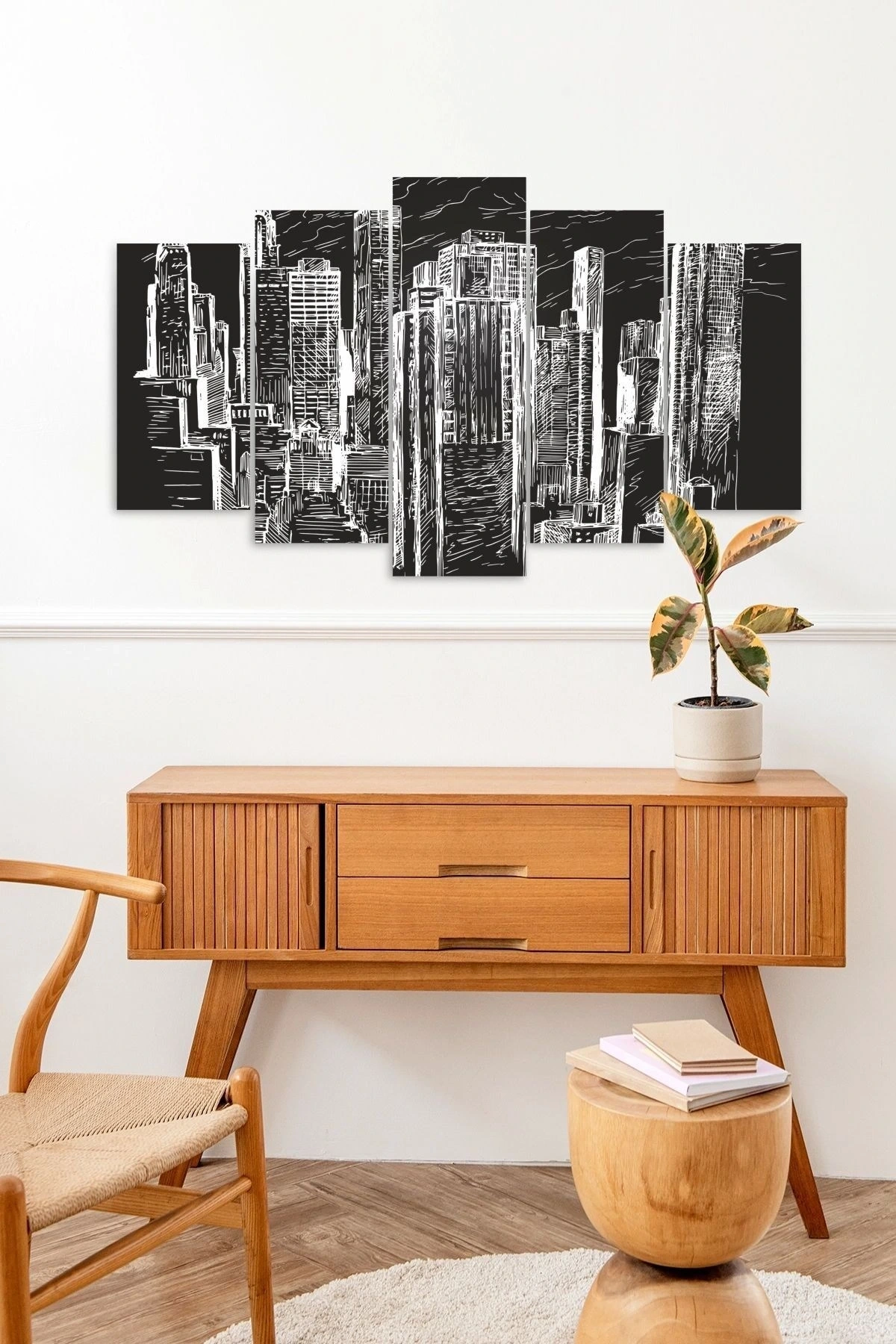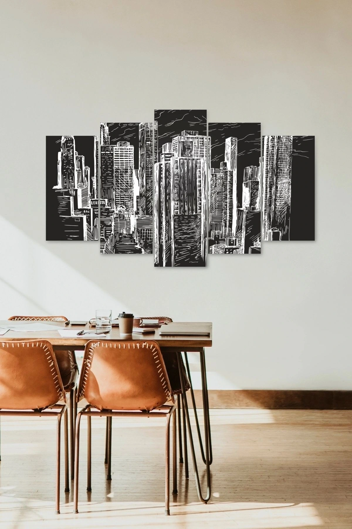 Binalar Manzara 5 Parçalı Mdf Tablo 60 x 100