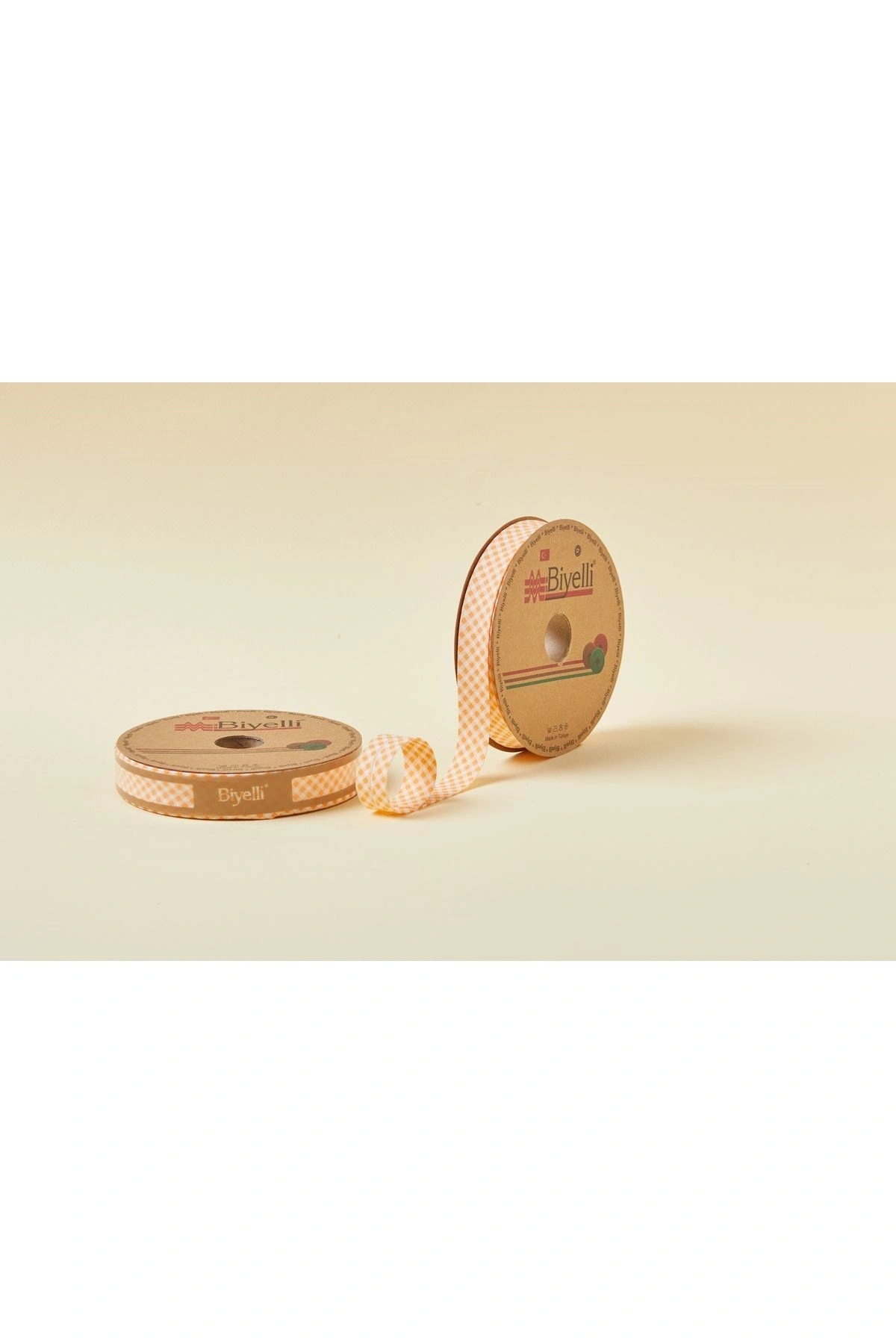 Biye Ekoseli Katlı E06 Turuncu 2 Cm 25 Metre %65 Koton %35 Polyester
