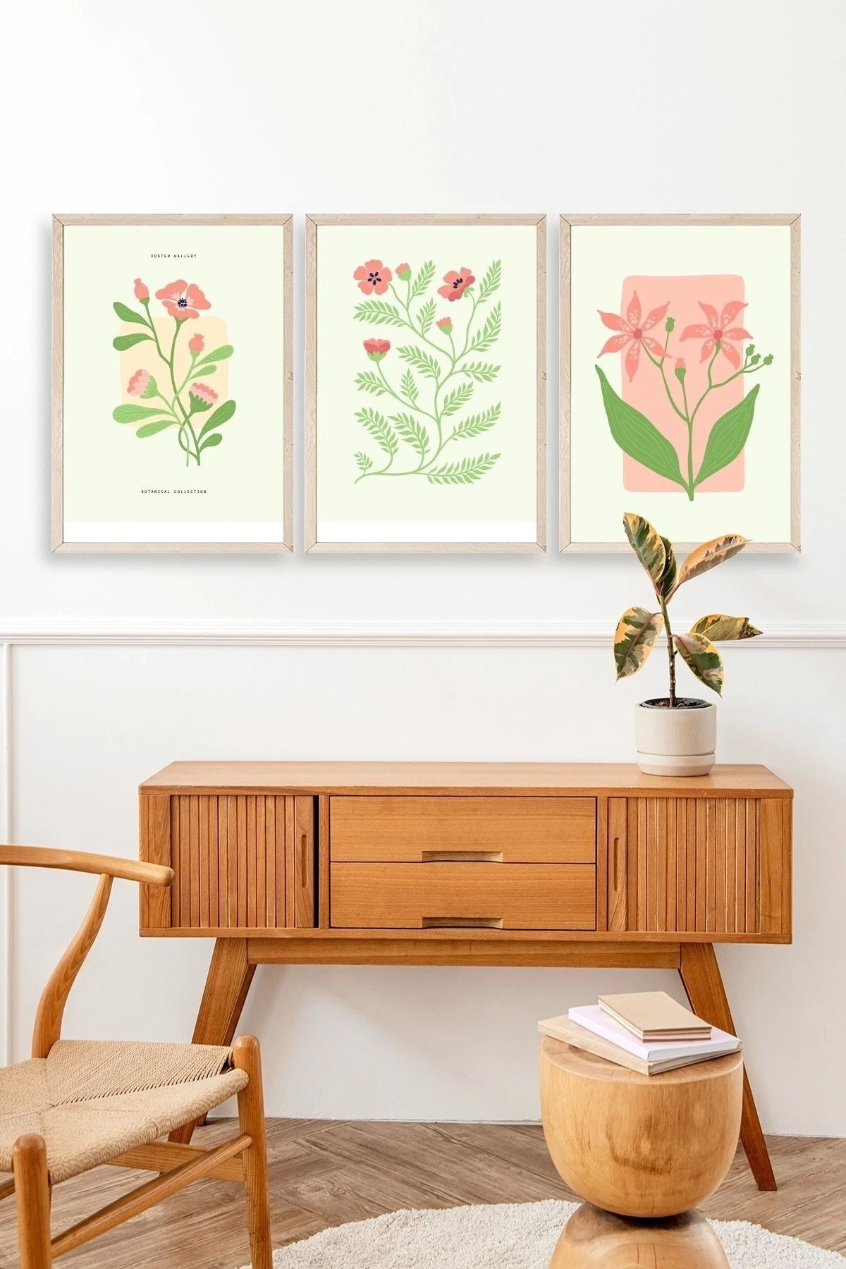 Botanik Üçlü Ahşap Çerçeveli Tablo 23 x 30