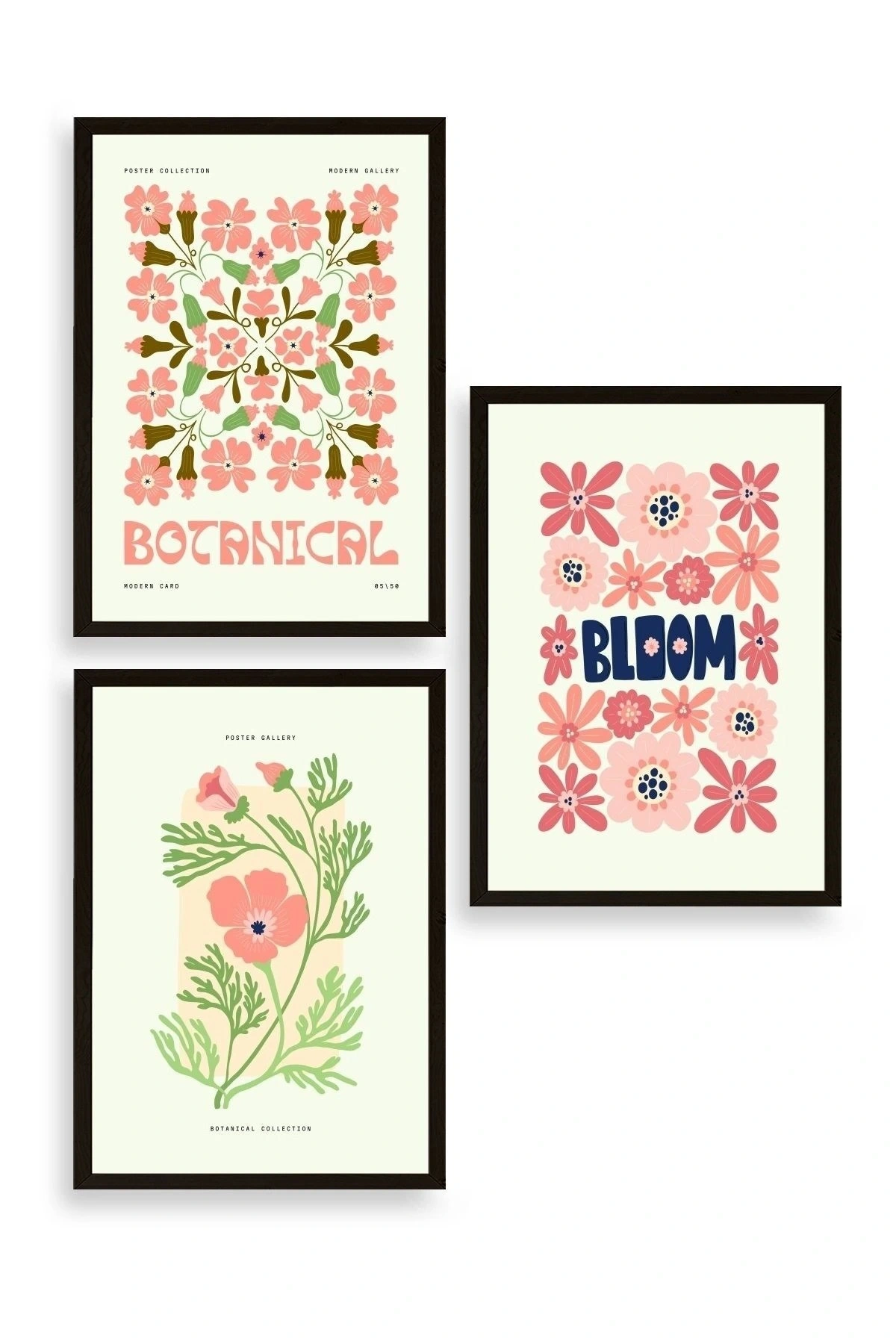 Botanik Üçlü Ahşap Çerçeveli Tablo 30 x 40