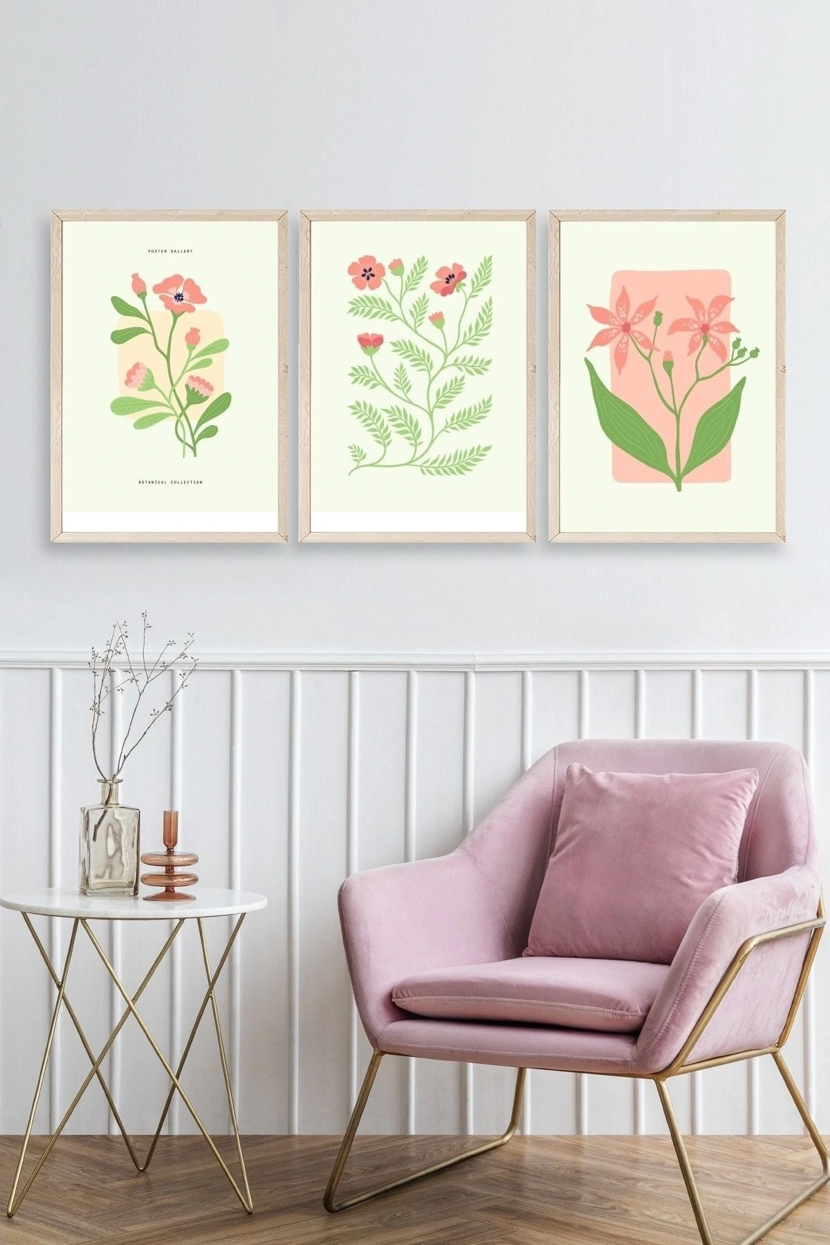 Botanik Üçlü Ahşap Çerçeveli Tablo 40 x 60
