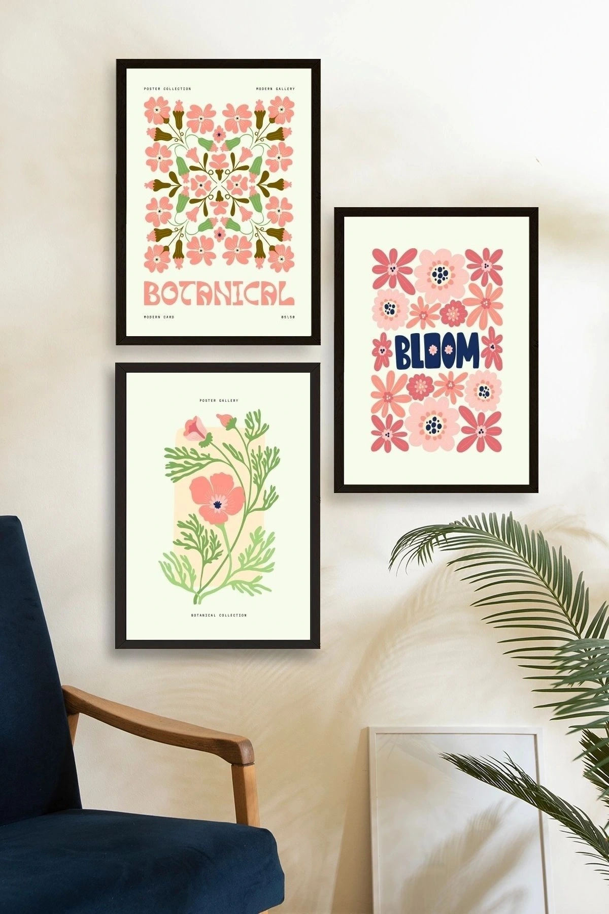 Botanik Üçlü Ahşap Çerçeveli Tablo 40 x 60