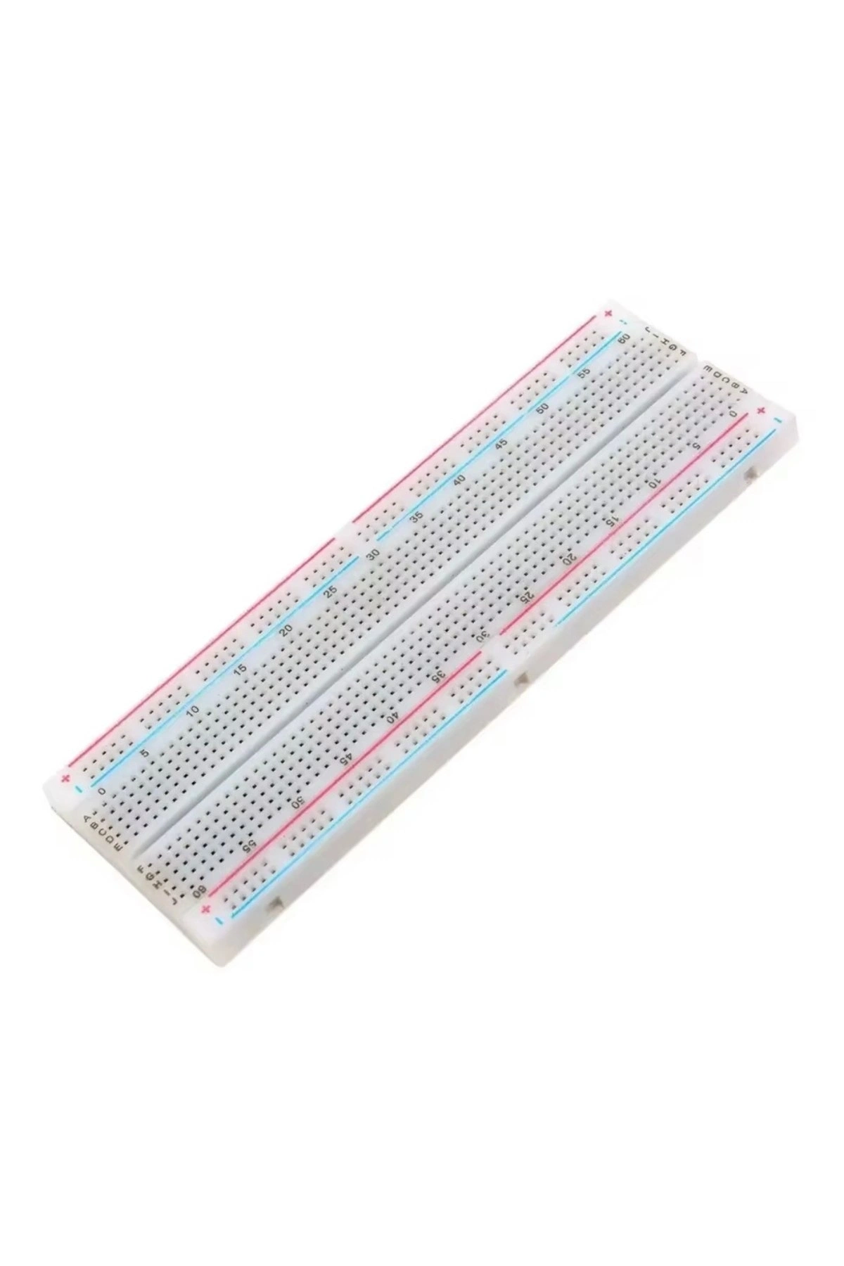 Lehimsiz Kullanım: Devre kurarken lehim yapmaya gerek kalmaz, kolayca tak-çıkar bağlantı imkânı sunar.; •830 Pin Giriş: Birçok elektronik bileşeni aynı anda bağlamaya uygundur.; •Uyumluluk: Arduino, Raspberry Pi ve diğer mikrodenetleyici projeleri için idealdir.; •Yeniden Kullanılabilir: Defalarca devre kurup sökmenize imkân tanır.; •Eğitim ve Proje Kullanımı: Öğrenciler, hobi elektronik meraklıları ve prototipleme yapanlar için vazgeçilmez bir üründür.; ✅ Elektronik projelerinizde lehimsiz, hızlı ve pratik devre kurulumları için breadboard tercih edin!