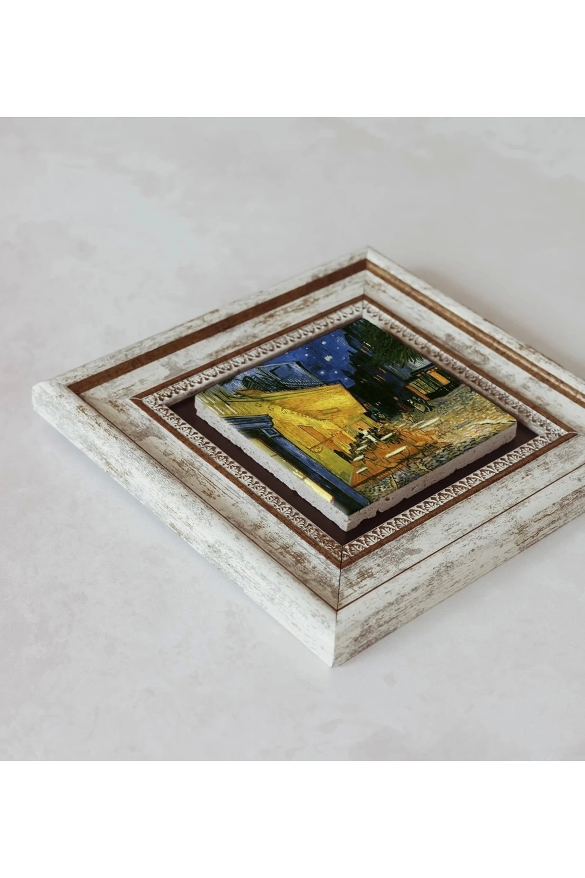 Cafe Terace Çerçeveli Taş Tablo , Çerçeveli Taş Duvar Dekoru 20 cm