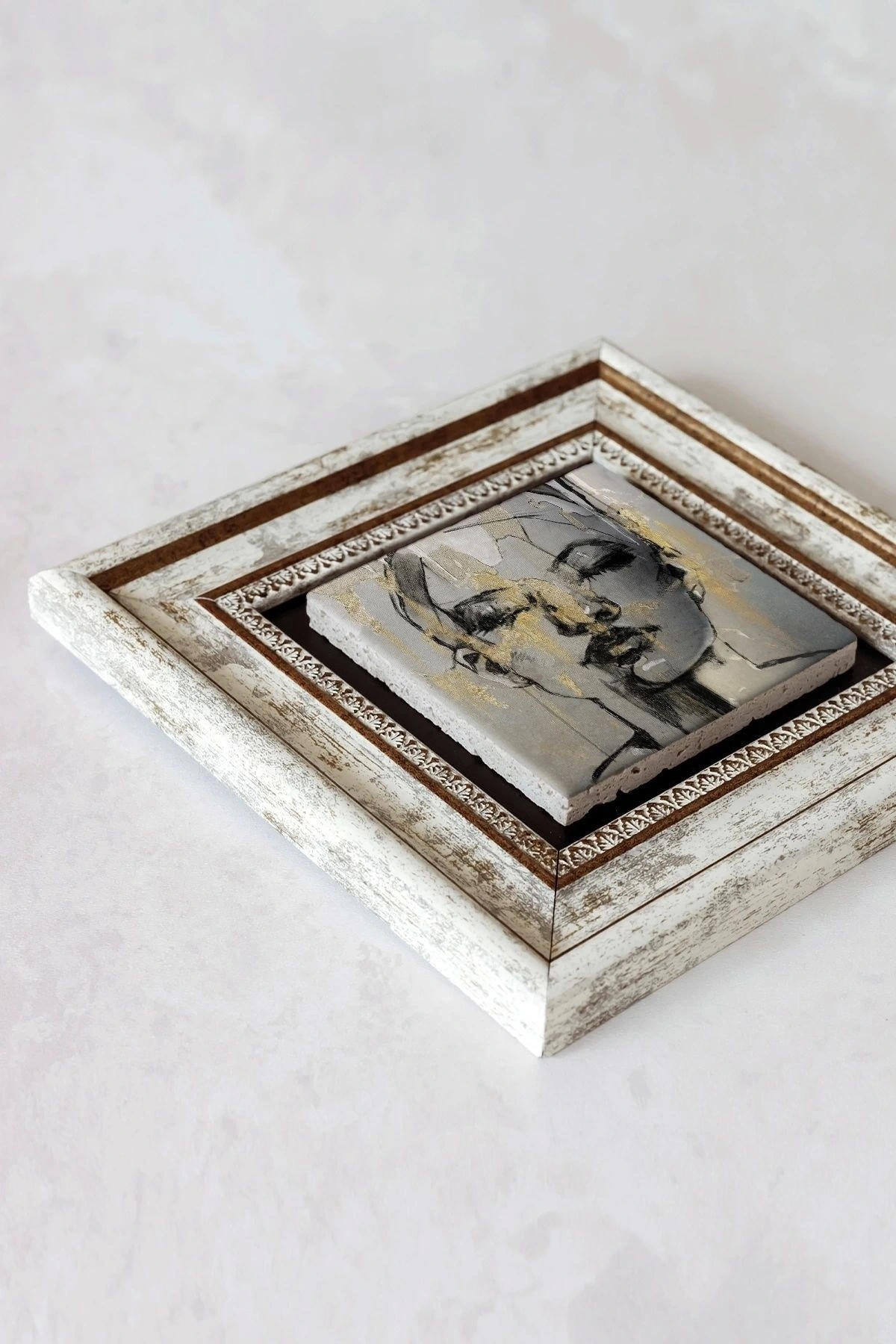 Ürün hakkında: Ölçüleri: 20 cm x 20 cm'dir. ; Kalınlık :2,5 cm'dir. ; Ürünün arka tarafında askı aparatı bulunmaktadır. ; Kullanılan çerçeveler yüksek kaliteli, eskitme görünümlü kompozit malzemeden üretilmiştir. ; Taşların yüzeyindeki baskı teknolojisi özel olup sağlığa hiçbir zararı yoktur. ; Kullanılan malzeme dağdan çıkan gerçek taş oldugu için yüzeyinde belli oranda gözenek bulunması ve renginin krem renginin tonlarını barındırması normaldir kimyasal malzeme teması Yüzey deformasyona maruz kalabilir. ; Nemli bezle silinerek temizlenebilir. ; Isıya, suya ve neme dayanıklıdır. ; Kutu içeriği: Orijinal kutu içerisinde 1 adet çerçeveli taş duvar dekoru. ; 1 adet çerçeveli duvar dekoru ağırlığı: 250 gr çerçeve askısı ile duvara montajı yapılabilir.;
