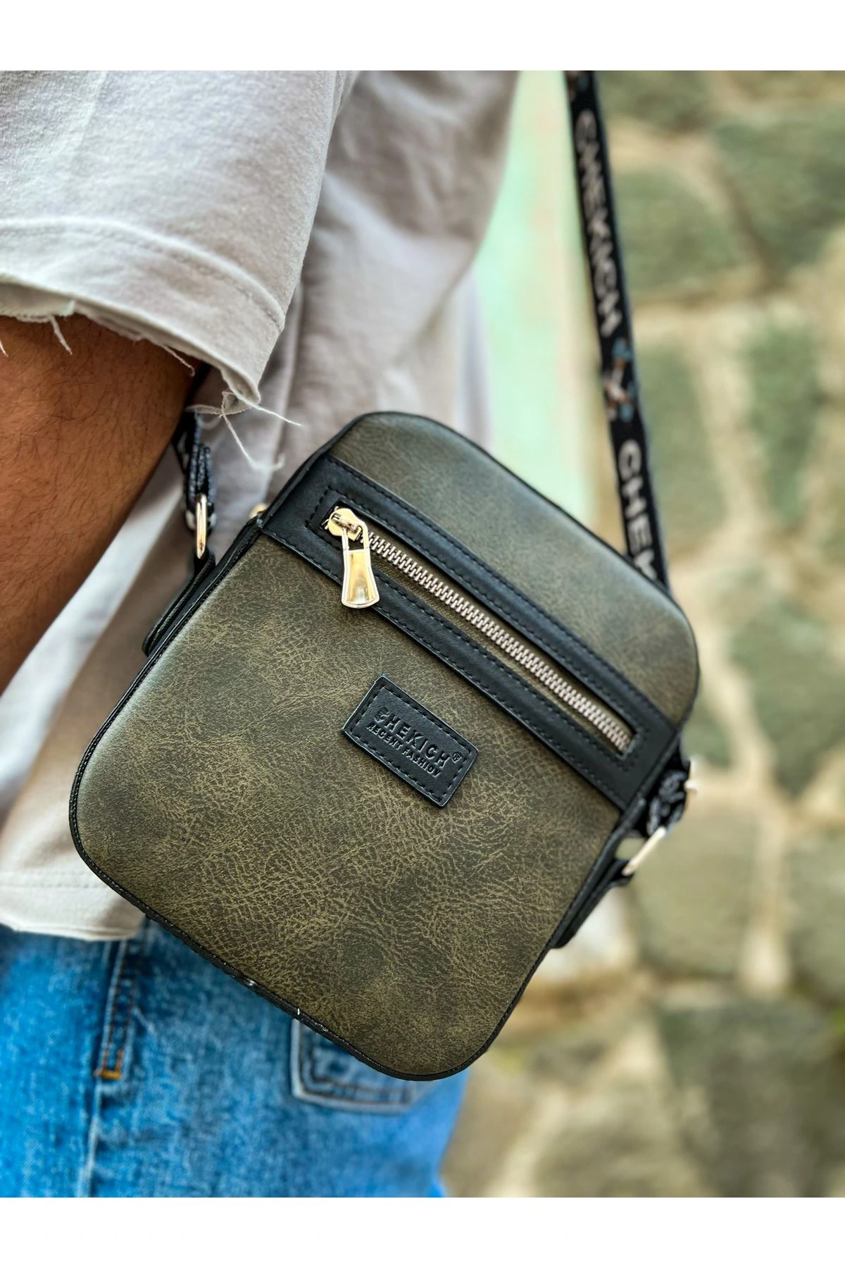 CNT010 - Cilt Deri Erkek Çapraz Çanta HAKI