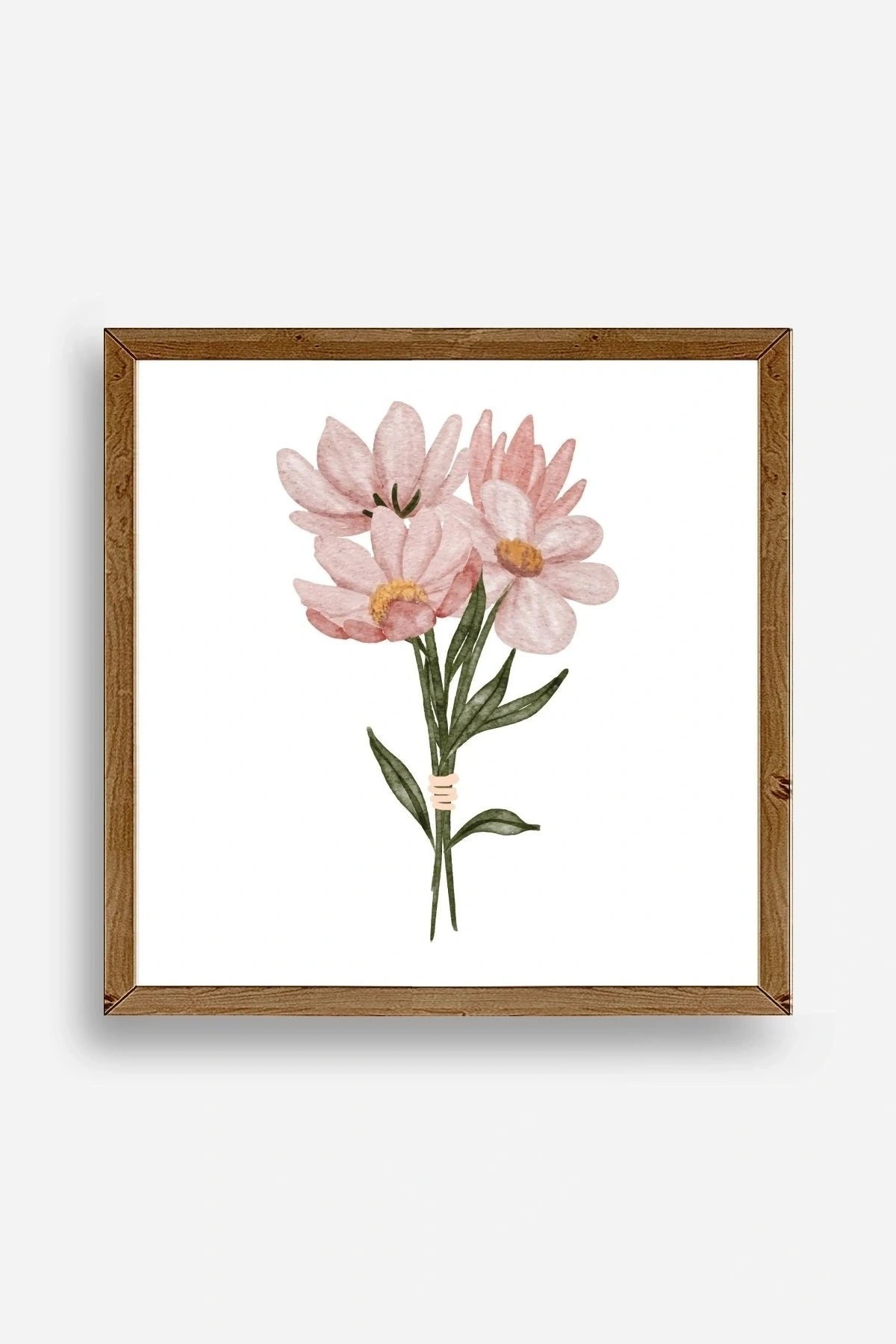 Çiçek Ahşap Çerçeveli Tablo 50 x 50