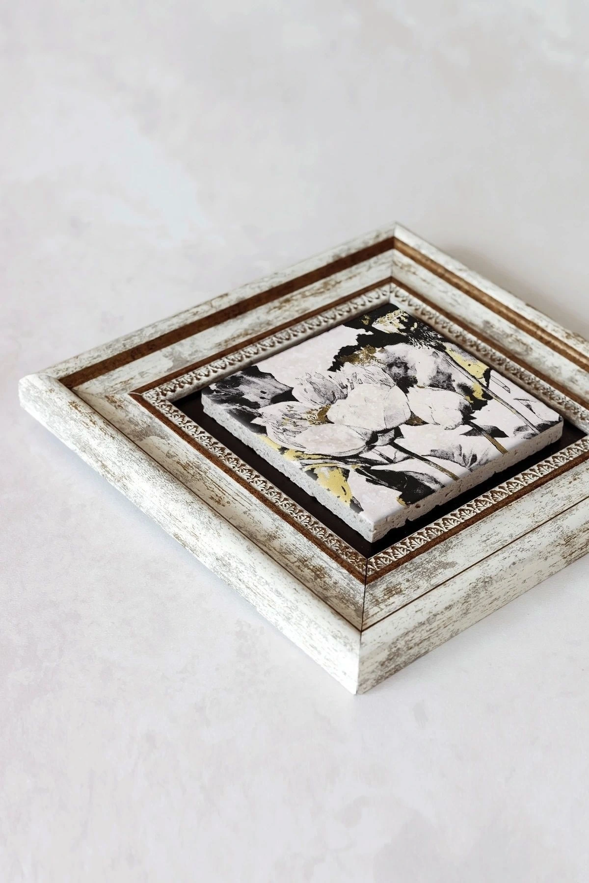 Çiçek Çerçeveli Taş Tablo , Çerçeveli Taş Duvar Dekoru-enkcrcvtbl-00155 20 cm