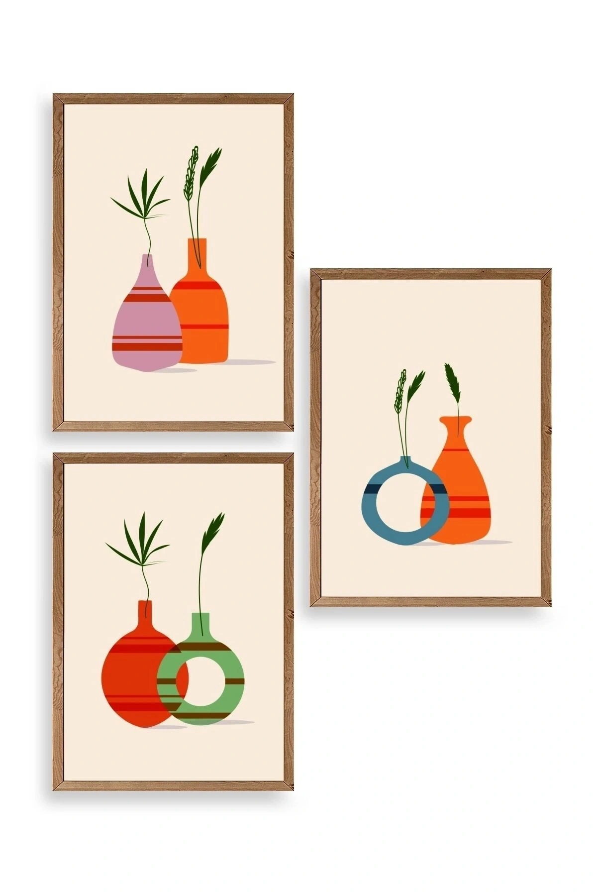 Çiçek Desenli Üçlü Ahşap Çerçeveli Tablo 50 x 70