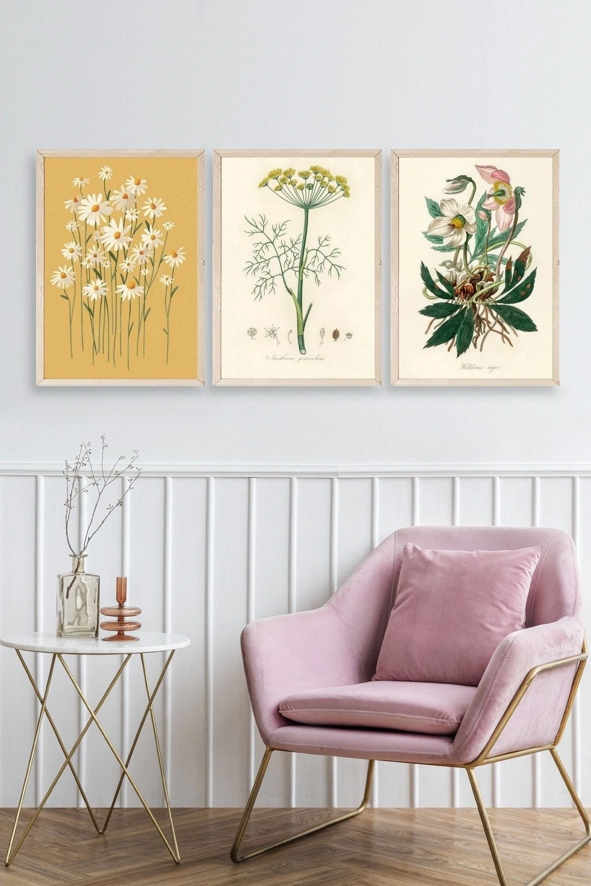 Çiçek Üçlü Ahşap Çerçeveli Tablo 50 x 70