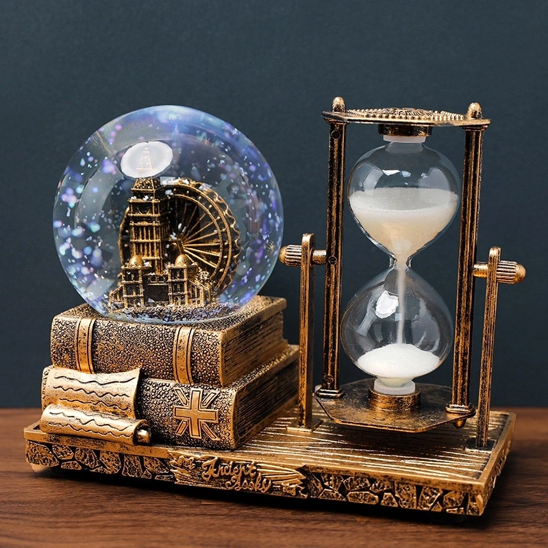 Dekoratif Kar Küresi ve Kum Saati Gold Renk