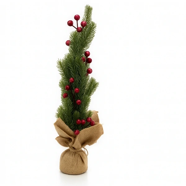 DEKORATİF MİNİ YAPAY KOKİNA SÜSÜrün ÖzellikleriDekoratif mini yapay kokina, 45 cm boyutuyla masa üstü dekorasyonlarda ve küçük alanlarda şık bir yeni yıl atmosferi oluşturmak için ideal bir üründür. Canlı yeşil çam dallarıyla birlikte tasarlanan kırmızı kokina detayları, alt kısmındaki keten kaplı saksı görünümü ise ağaca rustik ve sıcak bir tarz kazandırır. Dayanıklı yapay malzemeden üretildiği için her yıl tekrar kullanılabilir, şeklini uzun süre korur ve dökülme yapmaz. Ev, ofis, vitrin, kafe veya hediye amaçlı kullanımlarda dekoratif bir tamamlayıcı olarak öne çıkar.Paket İçeriği1 Adet Dekoratif Mini Yapay Kokina Süs