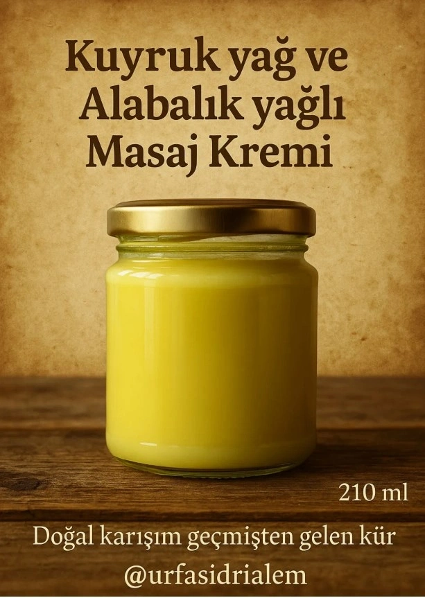 Geleneksel şifa yöntemlerinden ilham alınarak formüle edilen Kuyruk Yağı ve Alabalık Yağı içeren bu özel masaj kremi, kas ağrıları, romatizma ve eklem rahatsızlıkları gibi durumlarda destekleyici bakım sunar. 210 ml’lik geniş ambalajı sayesinde uzun süreli kullanım sağlar. Doğal içerikleri ile cildi yumuşatır, besler ve derinlemesine rahatlatır.