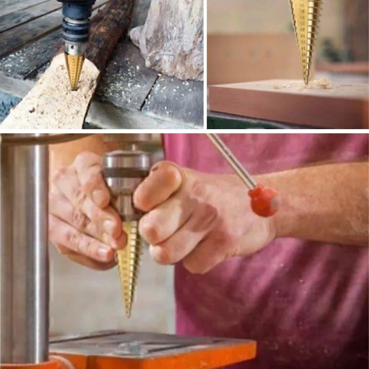 • 3 Parça Set: Farklı boyutlardaki 3 kademeli matkap ucu sayesinde çeşitli delik boyutları açılabilir.