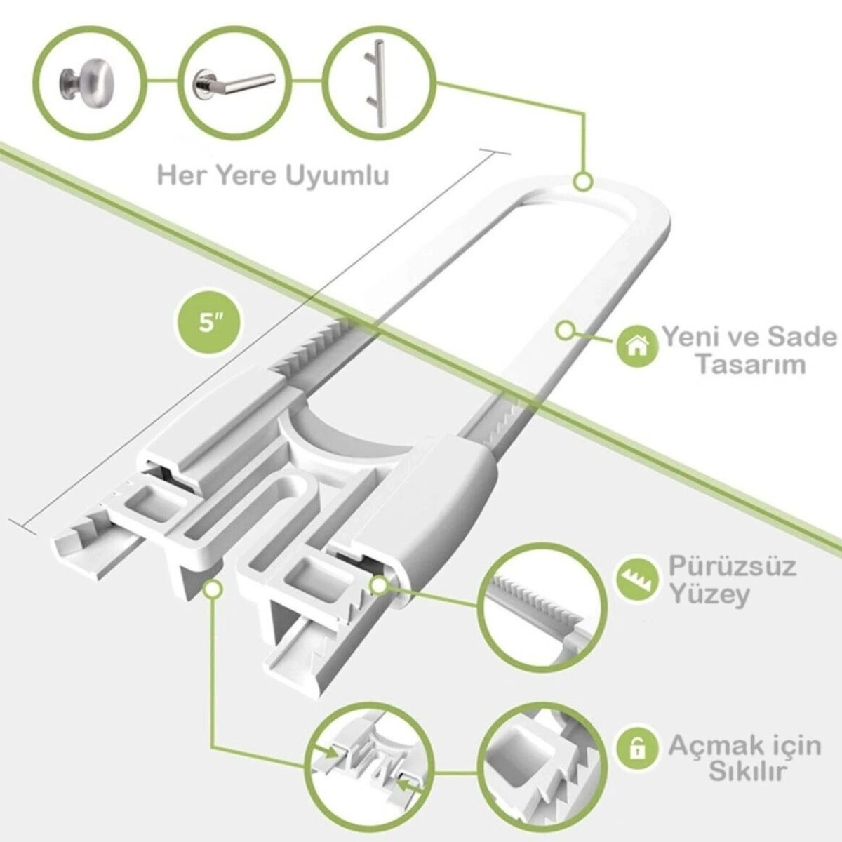 Evdeki dolaplarınızın kilitli kalıp, çocuklarınız için oluşabilecek olası kazaları önlemek amacı ile tasarlanmış Çocuk Koruma Dolap Kilidi