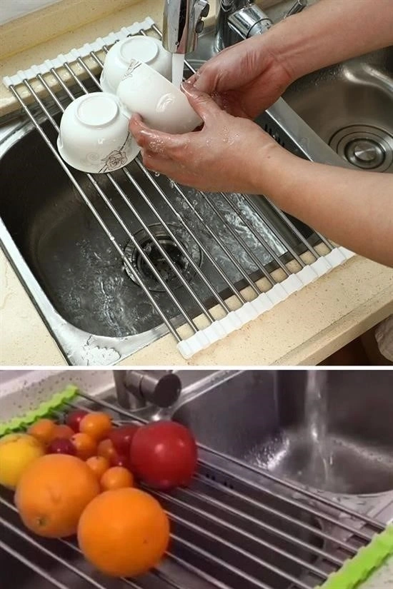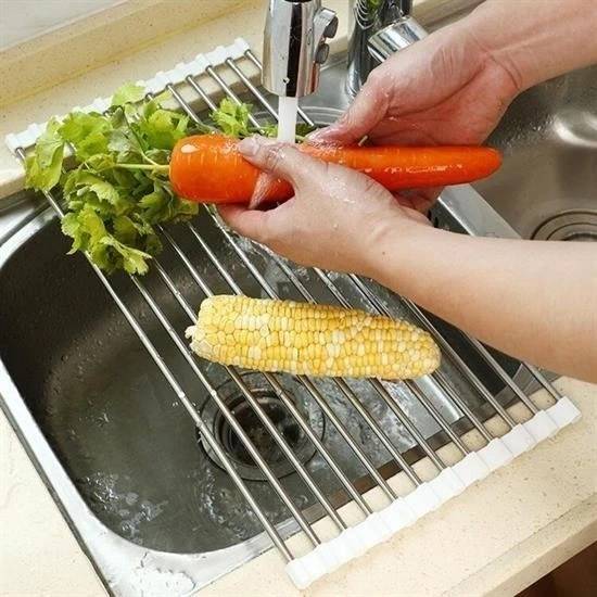 Durukar® Evye Üstü Katlanır Nihale Paslanmaz Çelik Pratik Sebze Meyve Bulaşık Kurutma Süzgeci