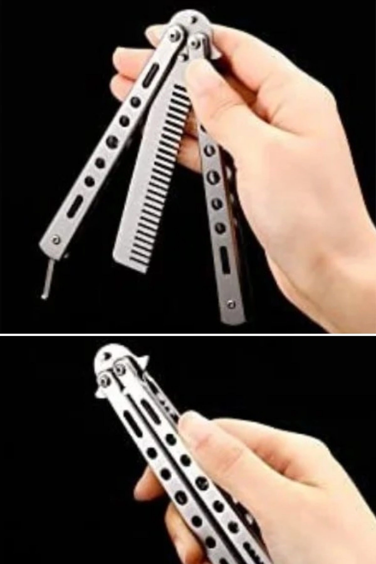 Durukar® Gri Katlanabilir Kelebek Bıçak Tarak ile her an kusursuz bir görünüm elde edin! ?✨