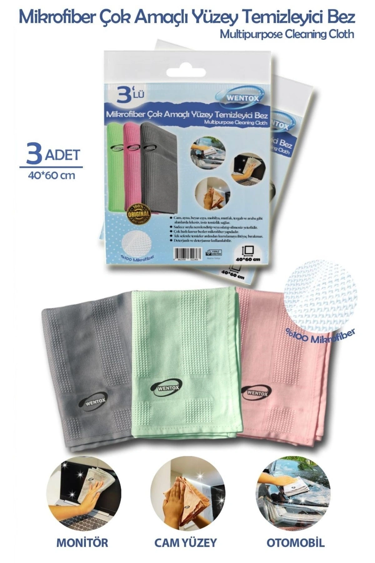 - Etkili Temizlik: Mikrofiber yapısı sayesinde su ve deterjan kullanmadan bile etkili temizlik sağlar.