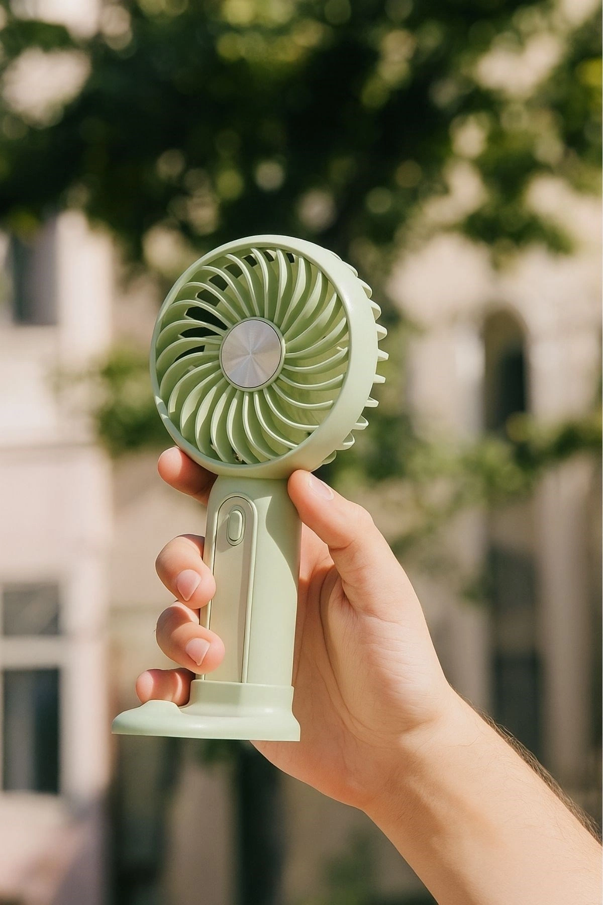 Hem masa üzerinde hem de elde taşınabilir olarak kullanılabilen bu standlı, USB ile şarj edilebilen çanta tipi el fanı, hayatınızı kolaylaştırır.