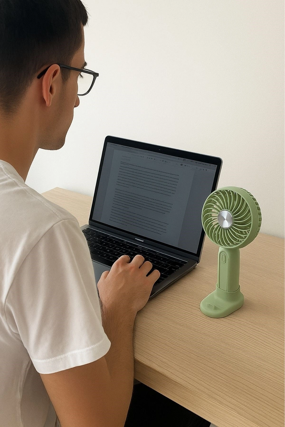 Katlanabilir standı sayesinde masa üstünde dengeli durur, çalışırken, ders çalışırken ya da makyaj yaparken eller serbest serinlik sağlar.