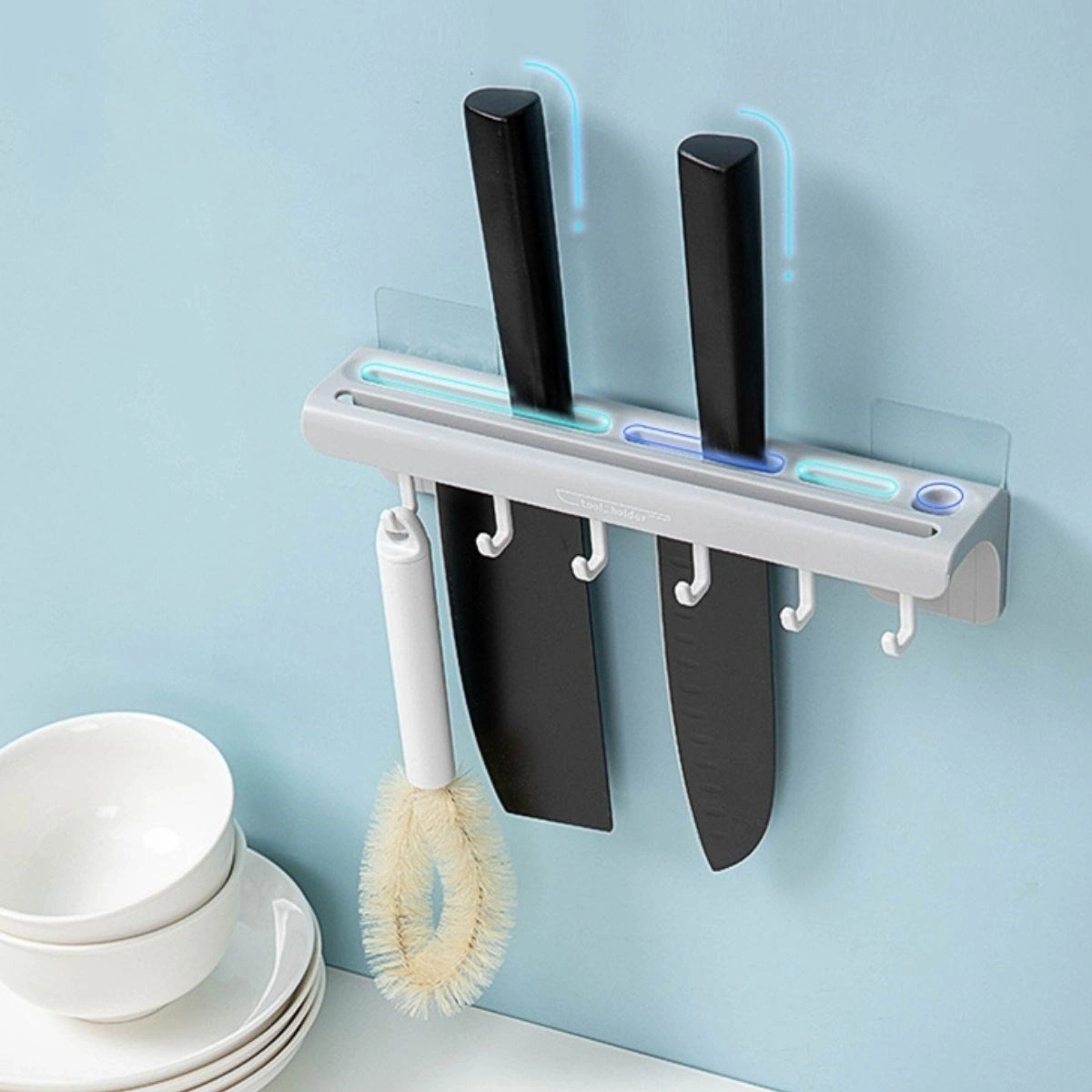 Kullanışlı tasarım: Pratik plastik bıçak askısı, mutfak dolaplarında veya duvarda kullanım için uygun tasarlanmıştır. Ayrıca askı, çekmece veya dolap içinde de kullanılabilir, böylece mutfakta yer sorunu yaşamadan bıçaklarınızı düzenli bir şekilde saklayabilirsiniz.