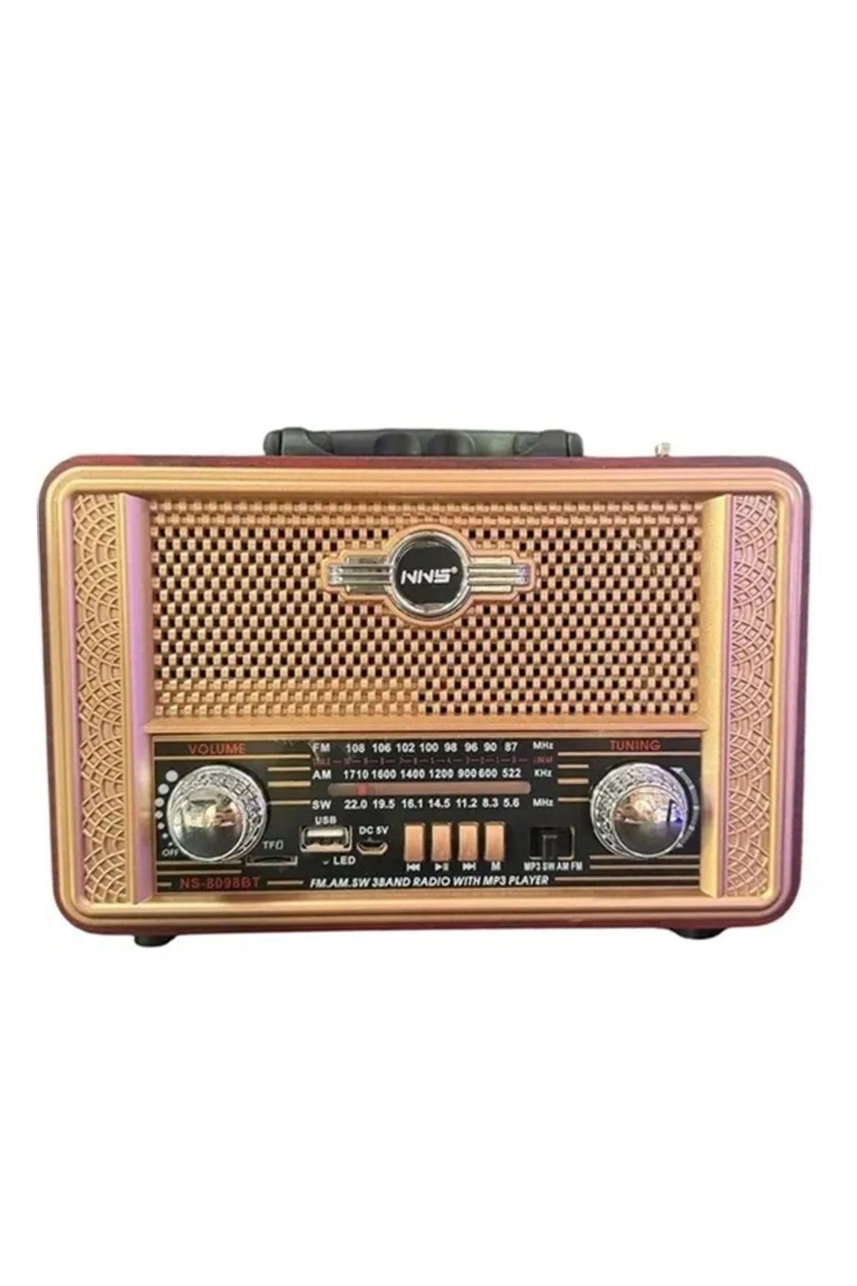 Durukar® Retro, Nostaljik, Ahşap Tasarım Bluetooth Hoparlörlü, Şarjlı, Taşınabilir Otantik Tasarımlı FM/AM Destekli Radyo NS8098