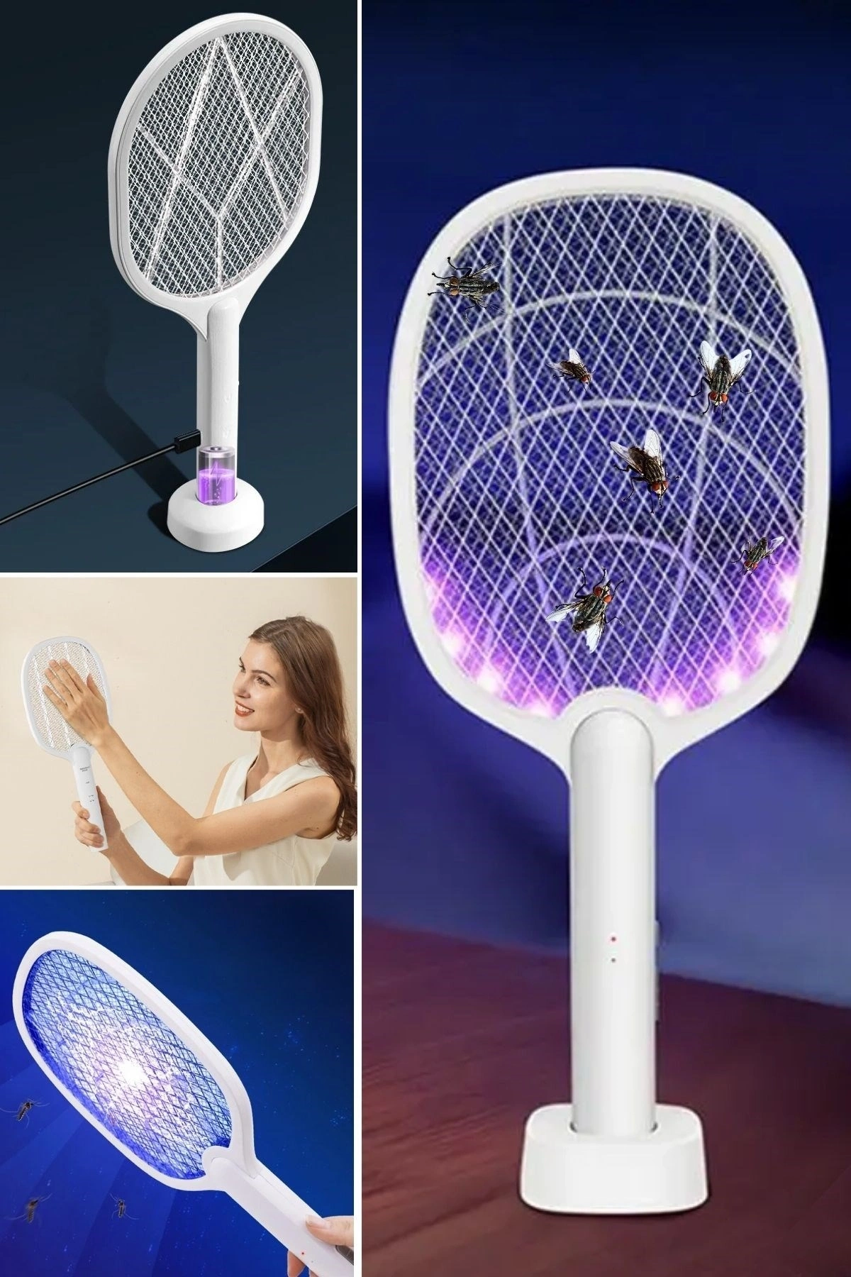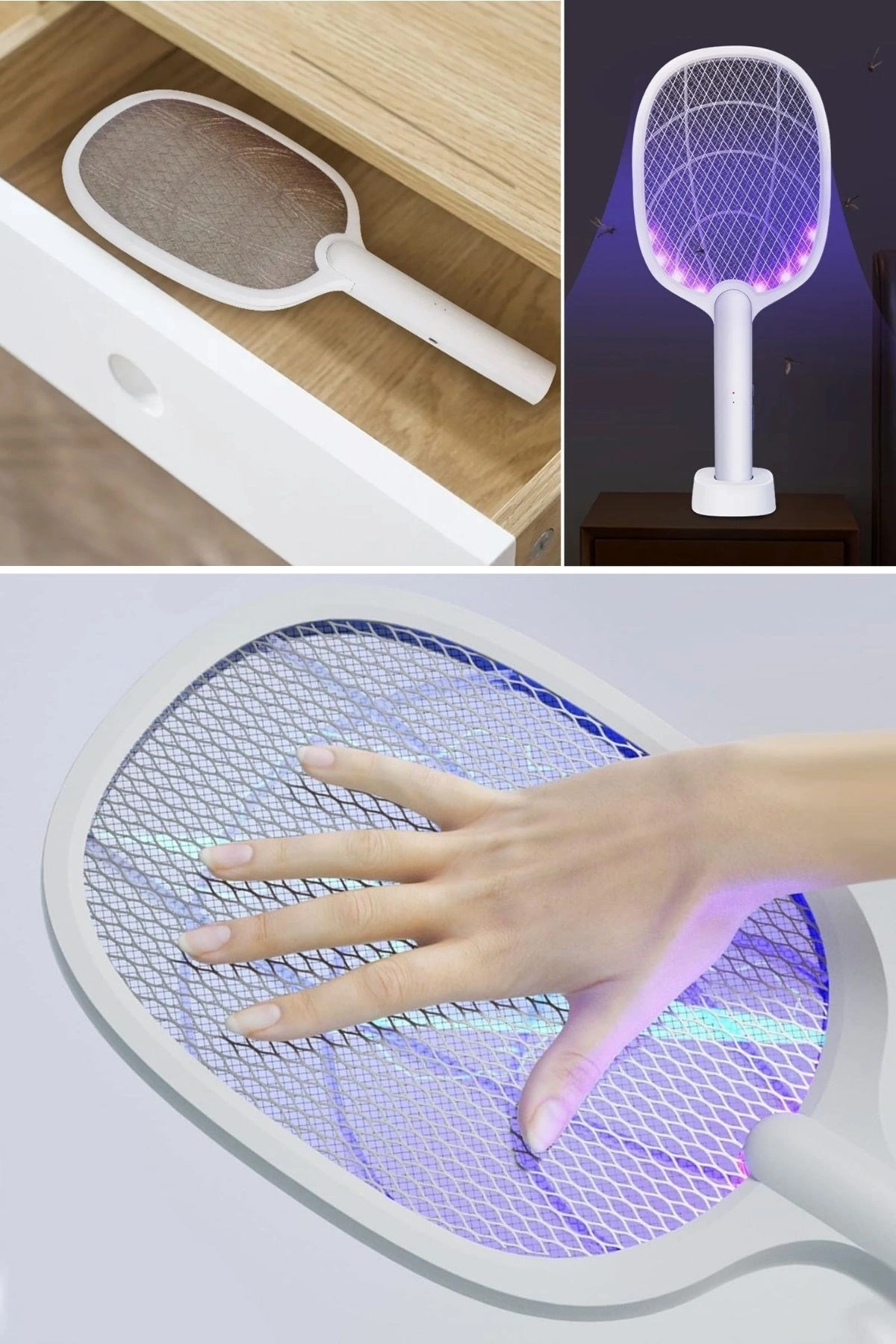 Şarjlı Sinek Öldürücü Masaüstü Standlı, Mor Işık Sinek Kovucu Raket 5W, sinek ve diğer uçan böceklerle mücadele için tasarlanmış etkili ve kullanışlı bir cihazdır. Şarj edilebilir bataryası ve masaüstü standı sayesinde pratik bir kullanım sunar.