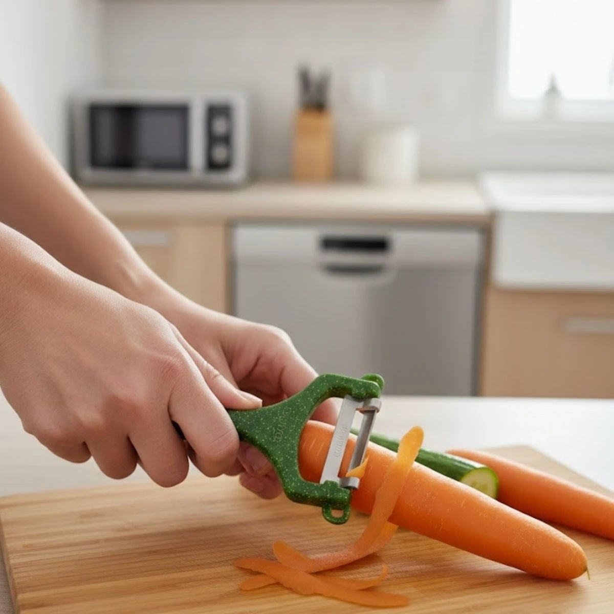 Küçük boy tasarımı hem kolay kavrama sunar hem de mutfak çekmecelerinde minimum yer kaplar. Ergonomik yapısı sayesinde uzun süre kullanımda bile elinizi yormaz. Dayanıklı paslanmaz çelik bıçak, uzun ömürlü kullanım sağlarken keskinliğini koruyarak her kullanımda pürüzsüz soyma performansı sunar.
