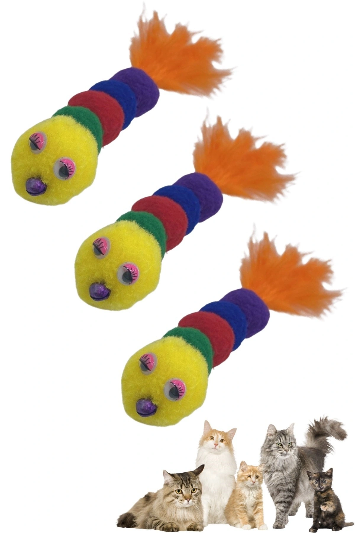 Durukar® Yumuşacık İpli Tırtıl Şeklinde Rengarenk Sevimli Evcil Hayvan Oyuncağı