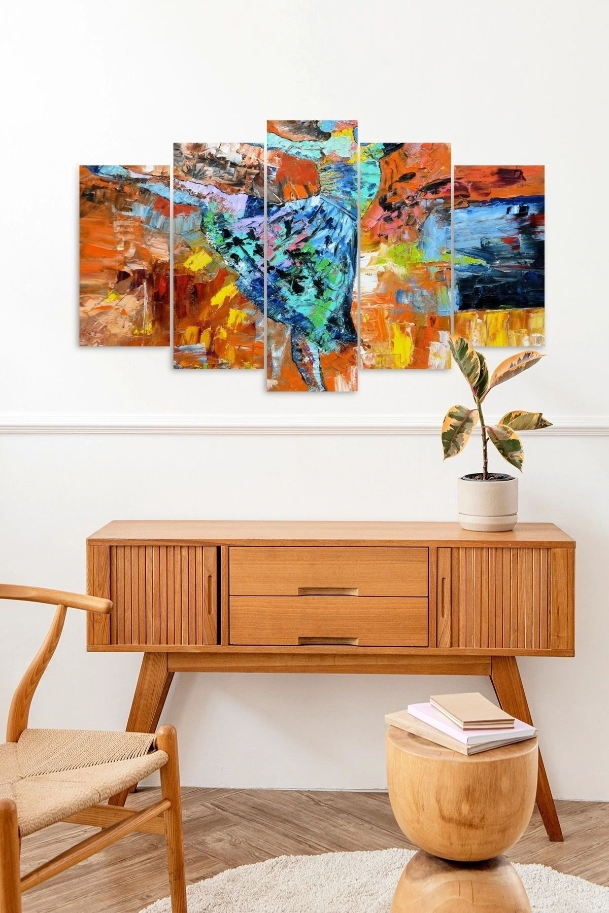 Düşündüren Kadın Dans 5 Parçalı Mdf Tablo 60 x 100