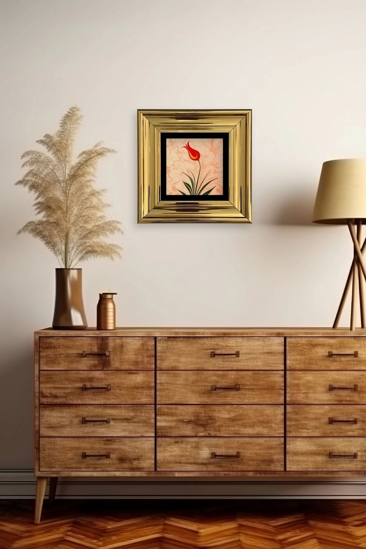 Ebru Lale Çerçeveli Taş Tablo 20 cm