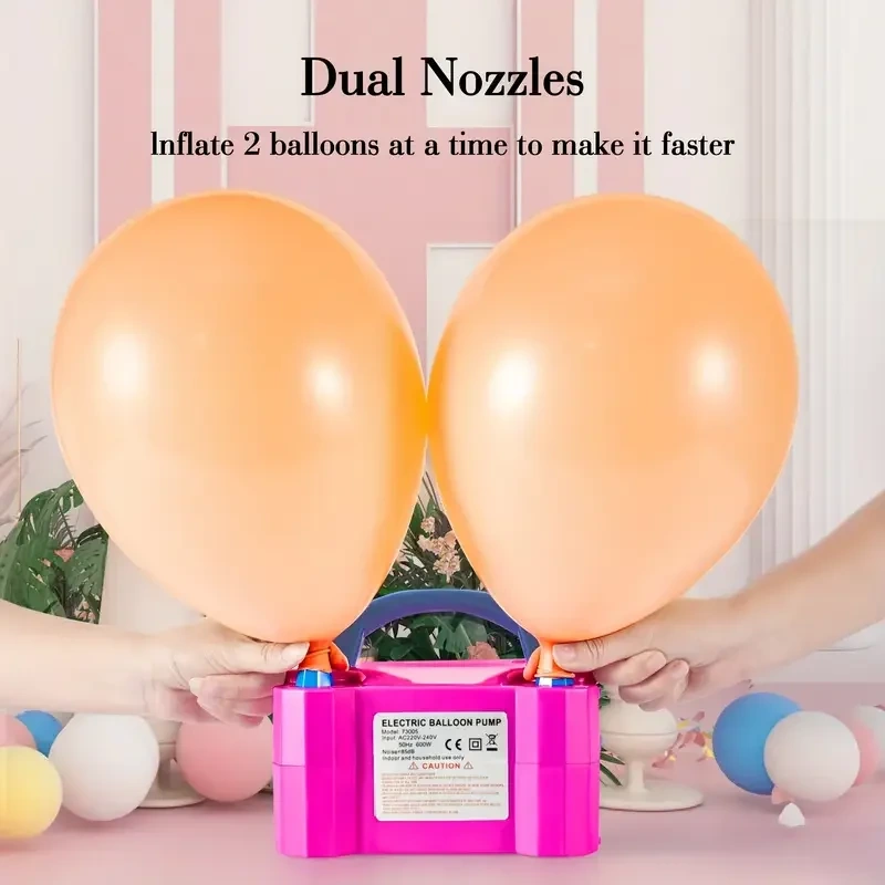Çift Çıkışlı Balon Şişirme Makinası, Elektrikli Balon Pompası 73005 Pembe Mavi