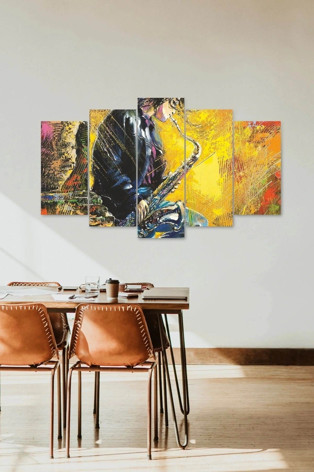 Erkek Müzik Saksafon 5 Parçalı Mdf Tablo