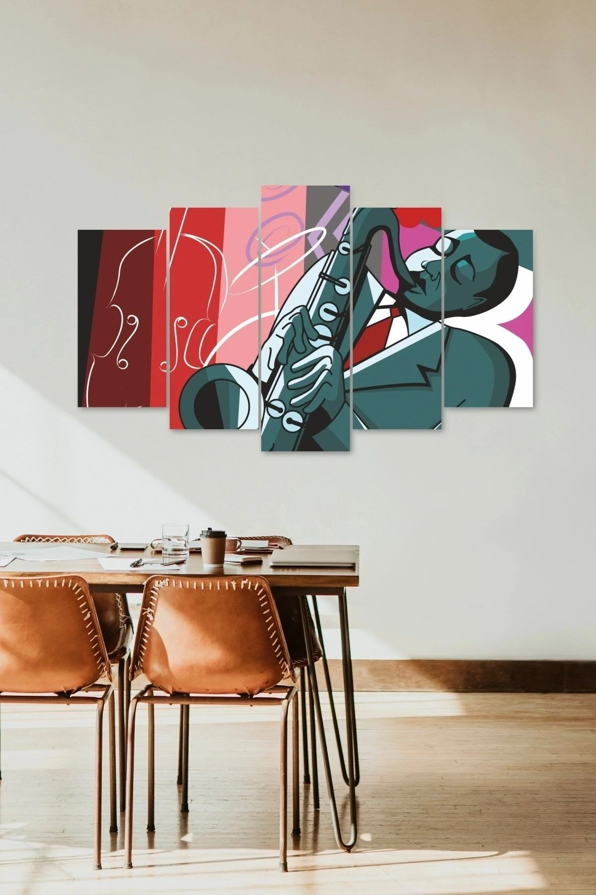 Erkek Saksafon Manzara 5 Parçalı Mdf Tablo 60 x 100