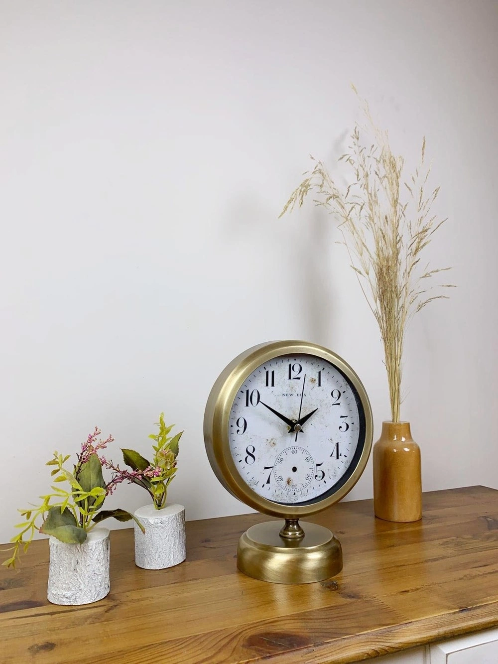 Şık ve modern tasarımıyla dikkat çeken  eskitme kaplama masa saatimiz, sessiz akar saniye mekanizmasıyla konforlu bir kullanım sunar. Gerçek cam koruma paneli sayesinde uzun ömürlü ve dayanıklıdır. Estetik görünümüyle hem ev hem de iş yerleri için ideal bir dekoratif üründür.