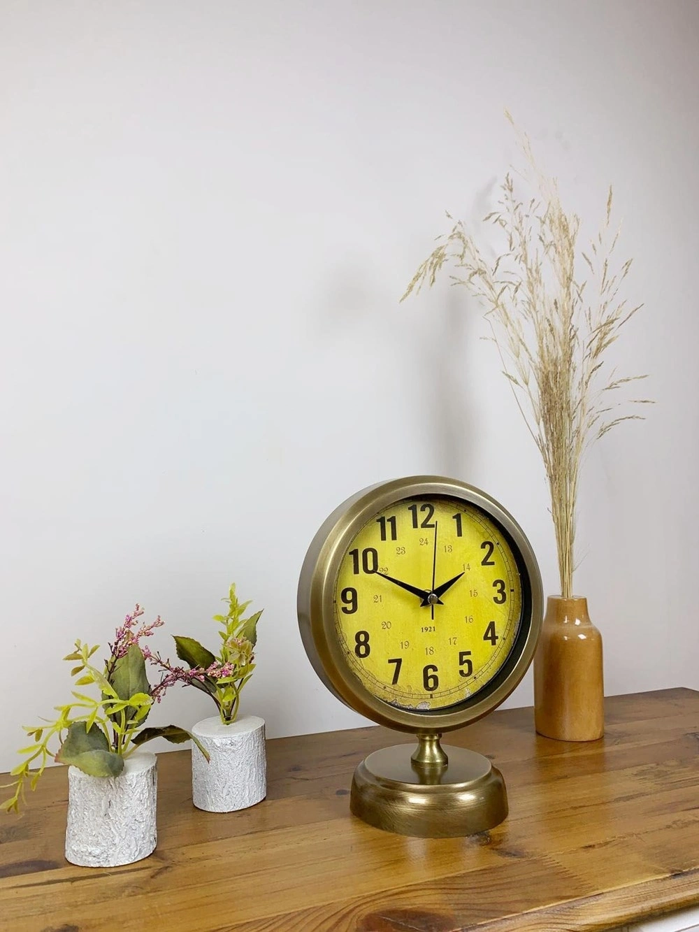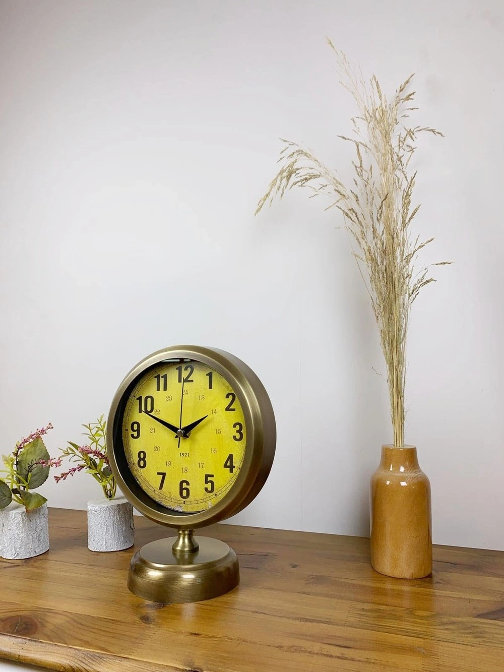 Şık ve modern tasarımıyla dikkat çeken  eskitme kaplama masa saatimiz, sessiz akar saniye mekanizmasıyla konforlu bir kullanım sunar. Gerçek cam koruma paneli sayesinde uzun ömürlü ve dayanıklıdır. Estetik görünümüyle hem ev hem de iş yerleri için ideal bir dekoratif üründür.